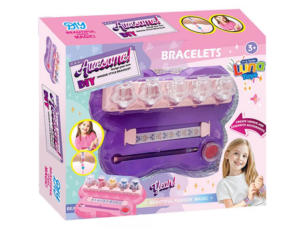 Lepd meg a kreatív kis ékszerkészítődet egy olyan játékkal, amellyel valódi, csillogó karkötőket alkothat saját kezűleg! A DIY Csillogó Karkötőkészítő Szett a Luna Toys-tól színes gyöngyökkel, mintás karkötőalapokkal és egy praktikus tároló-alkotó állomással érkezik minden benne van, ami egy varázslatos kézműves délutánhoz kell!