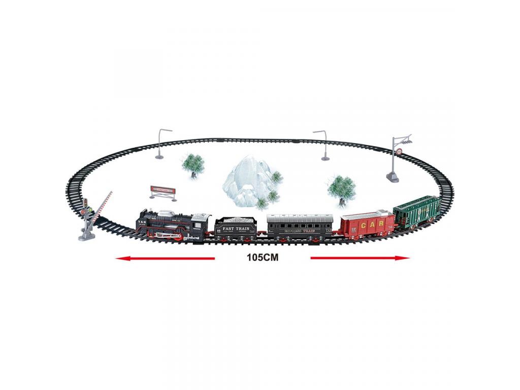 A szett része a gőzmozdony, többféle vagon (szenes, személyszállító, teherszállító), sínelemek, valamint kiegészítők, mint lámpák, jelzőtábla és átjáró. A pálya összeállításával egy 105 cm átmérőjű teljes kör alakú vonatpálya hozható létre, amelyen a vonat izgalmasan halad körbe menet közben világít és vonathangokat ad ki, hogy a játék még élvezetesebb legyen.
