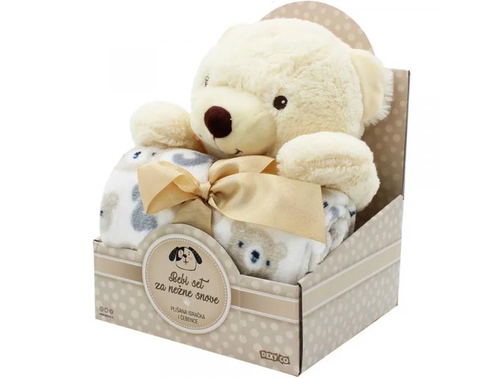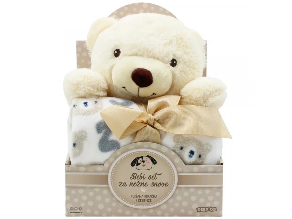2 részes ajándékszett: plüssmackó és puha babatakaró