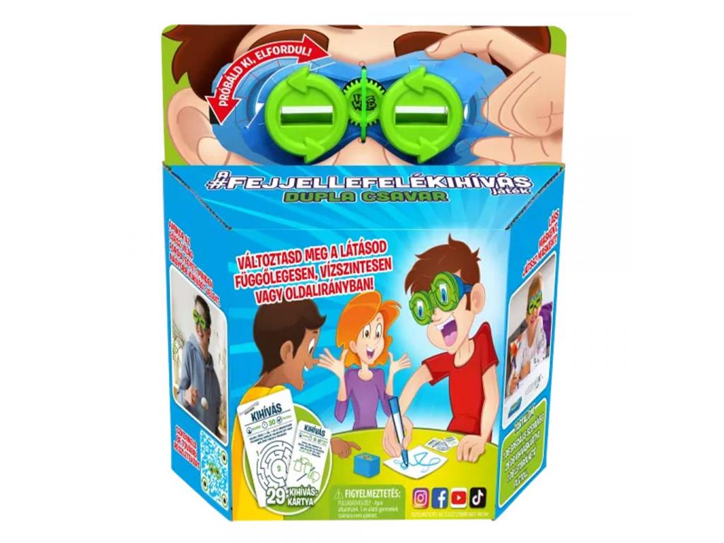 Készülj fel egy teljesen új játékélményre, ahol semmi sem az, aminek látszik! A Fejjel lefelé kihívás Dupla csavar társasjáték garantáltan fejre állítja a megszokott világodat, és szó szerint is! A játék lényege, hogy egy speciális, periszkópszerű szemüveget viselve kell kreatív és ügyességi feladatokat teljesíteni miközben a világod fejjel lefelé, oldalra vagy épp vízszintesen fordul.