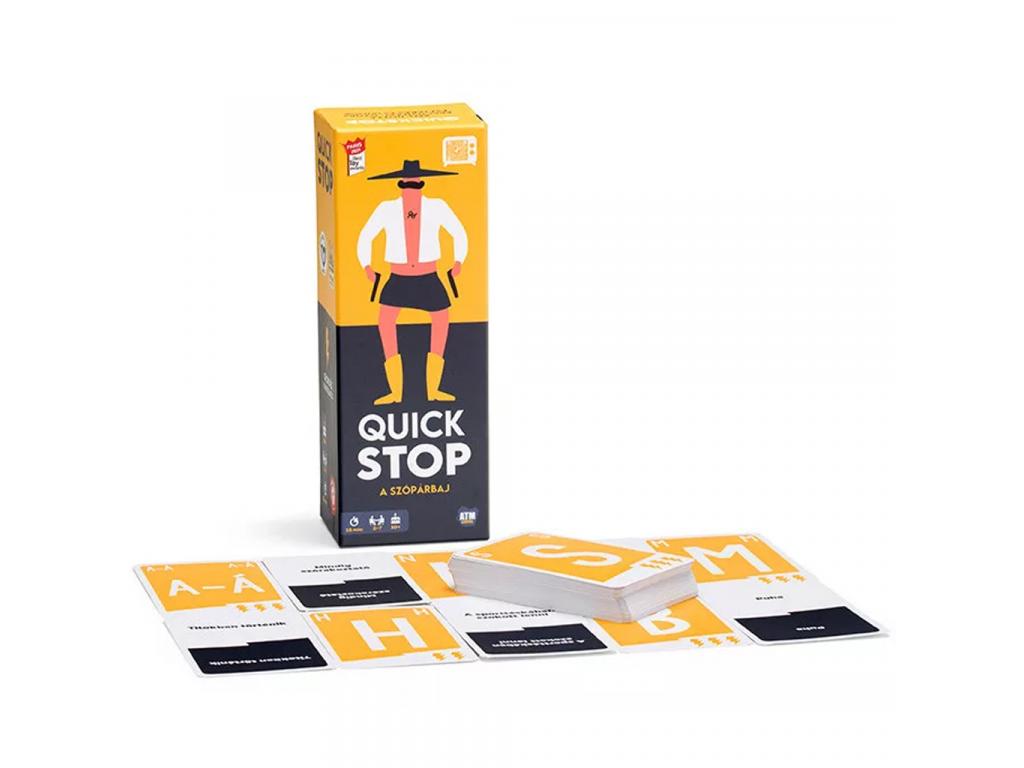 A Quick Stop egy villámgyors reakciókra épülő szópárbaj, ahol az számít, ki tud gyorsabban gondolkodni és beszélni! Ez a szórakoztató partijáték garantáltan felpörgeti a hangulatot baráti társaságban vagy családi összejöveteleken hiszen itt a szavakért folyik a verseny, idő ellen.