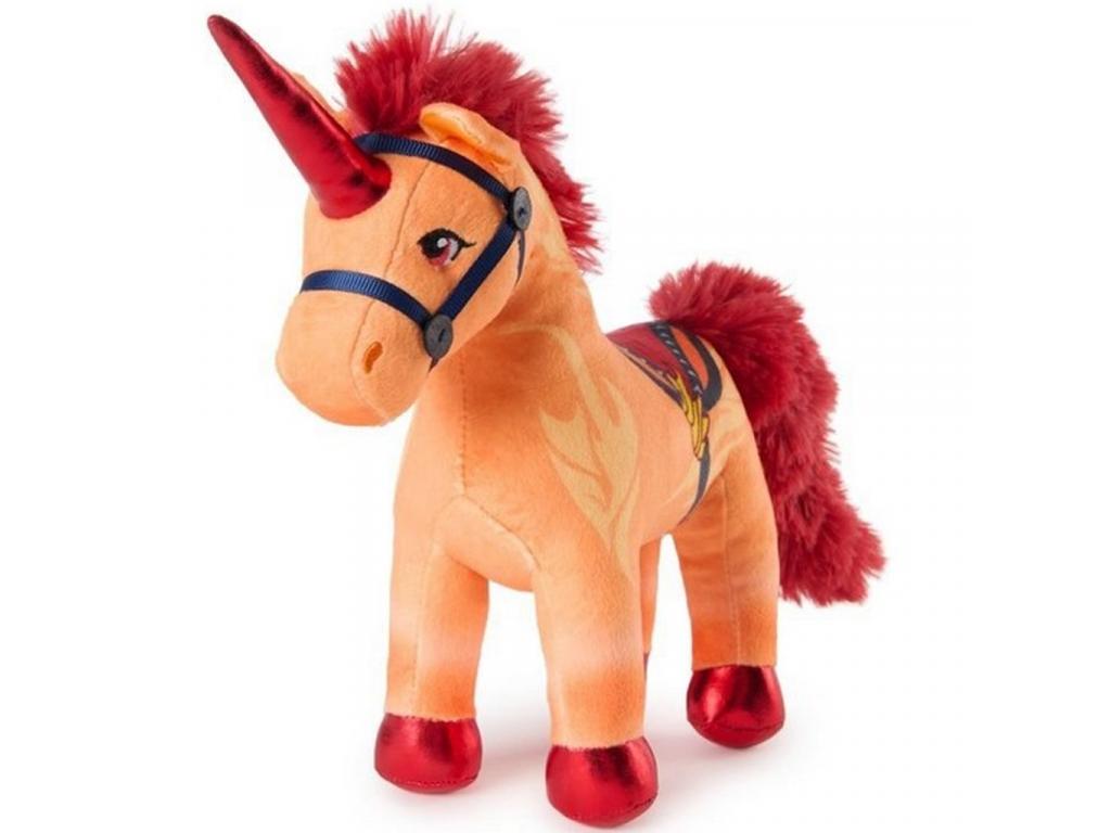 A puha, narancs árnyalatú testet tűzminták díszítik, a paták és a szarv pedig fényesen csillognak, mintha valóban a lángok melege ragyogna bennük. A sörénye és farka selymesen puha, gazdag vörös színben pompázik, így a gyerekek imádni fogják simogatni és ölelgetni. A részletgazdag hímzések, a kék kantár és a karakteres tekintet mind hozzájárulnak Cinder egyedi megjelenéséhez.