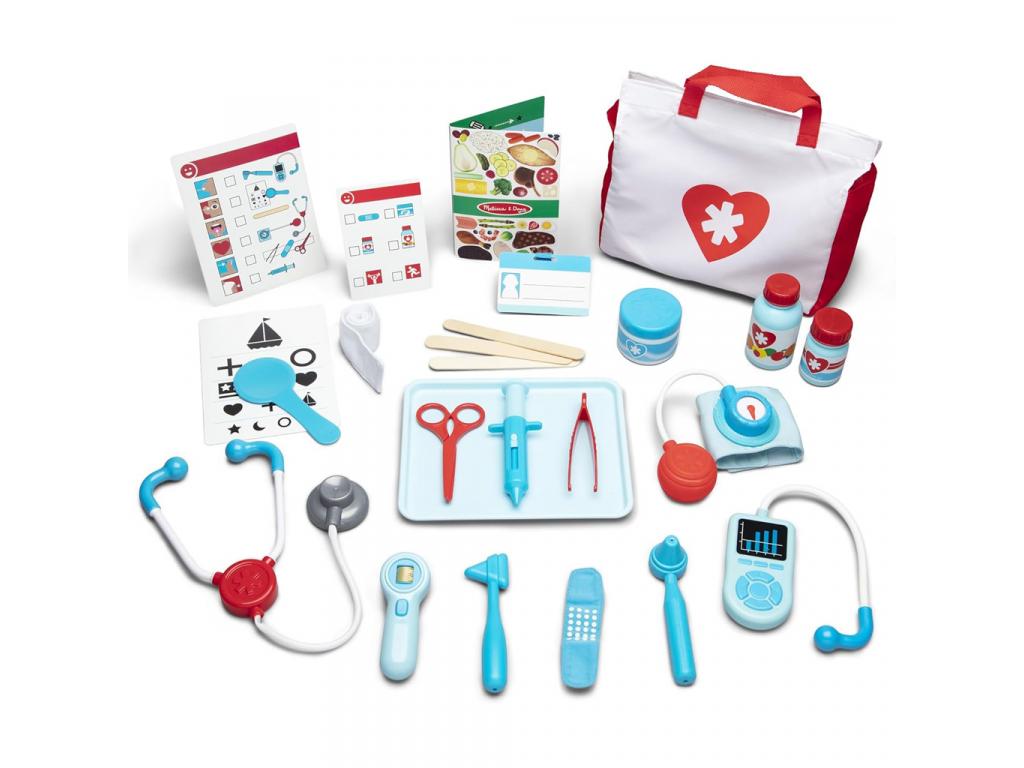 Ha a gyermeked érdeklődik az orvosok világa iránt, vagy szeret segíteni és gondoskodni másokról, akkor a Melissa & Doug Doktor Játékszett Táskával tökéletes választás lesz számára! Ez a 25 részes, gazdagon felszerelt orvosi játékkészlet lehetőséget ad a kis doktoroknak arra, hogy valósághű környezetben gyakorolják a gyógyítást mindezt játékos és biztonságos formában.
