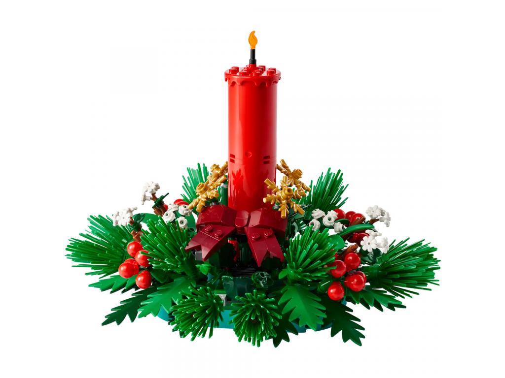 Ünnepi vidámság - Ennek a karácsonyi LEGO szettnek a közepén egy piros gyertya van, amelyet piros bogyók, arany csillagok és zöld fólia vesz körül