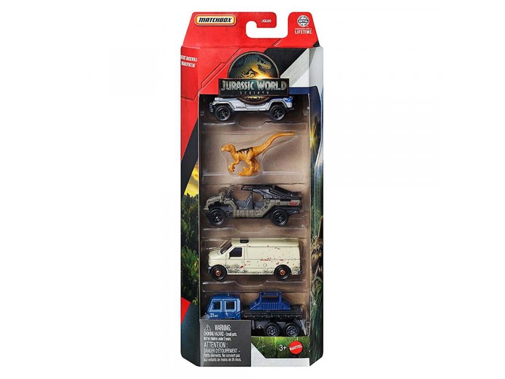 A Matchbox Jurassic World Rapid Getaway Unit 5db-os kisautó szett - Mattel leírása: