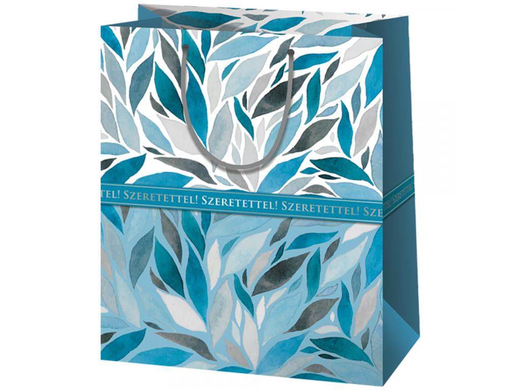 Amikor igazán nagy meglepetéssel készülsz, szükséged van egy igazán nagy és mutatós ajándéktáskára a Cardex Szeretettel! feliratú gigant méretű (40x20x55 cm) ajándéktáskája pont ezt kínálja. A vízfestékes levélmintás dizájn kék, türkiz és szürke árnyalatokban pompázik, így modern, mégis meleg hatást kelt. A táska közepén futó sávban többször ismétlődő Szeretettel! felirat személyes, kedves üzenetet ad át bármilyen alkalomra.