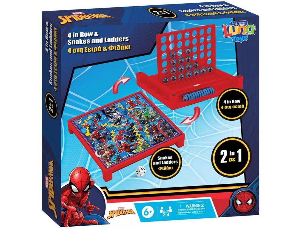 Luna: Pókember 2 az 1-ben Négyet egy sorba és Kígyók és létrák társasjáték