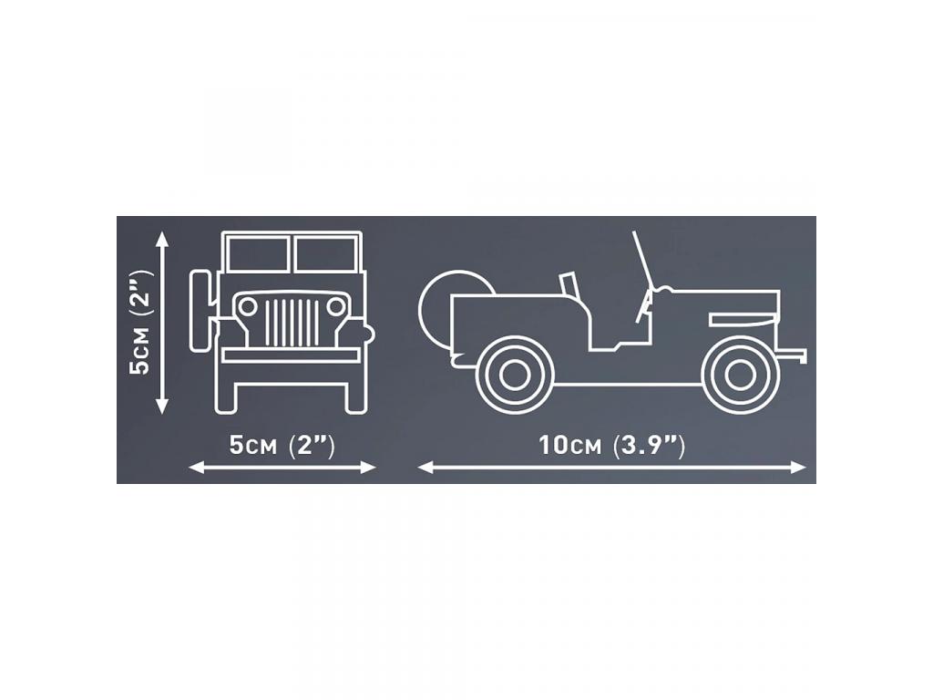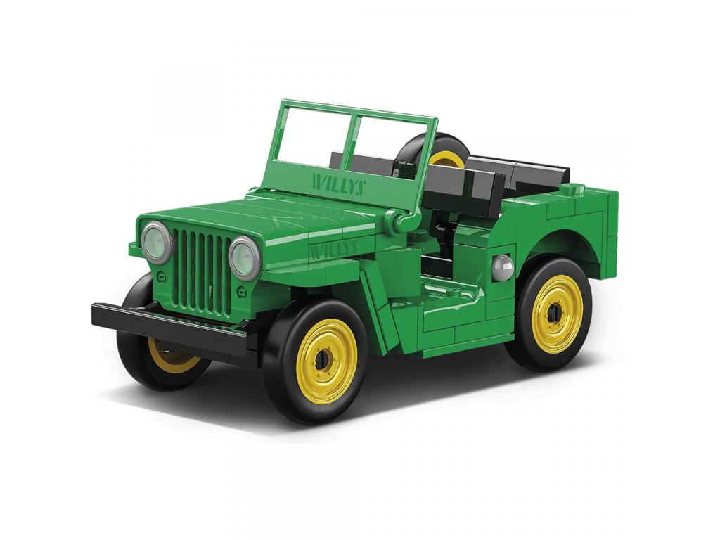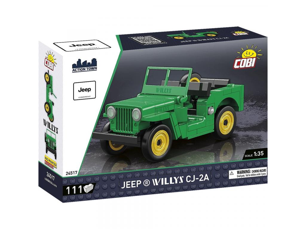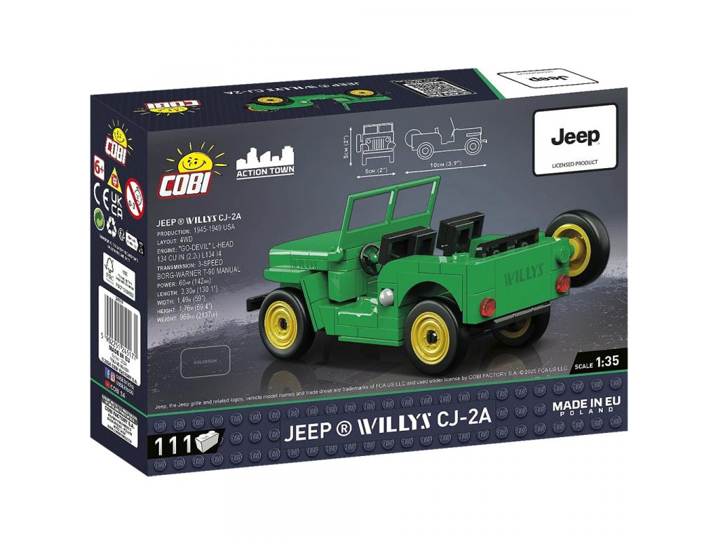 A Jeep Willys CJ-2A a legendás amerikai terepjáró civil verzióját eleveníti meg COBI stílusban. A Youngtimer Collection részeként készült építőjáték 1:35 méretarányú, így egy autentikus, retró hangulatú modell építhető meg belőle. A kész autó körülbelül 10 cm hosszú, 5 cm magas és széles, így ideális méret gyűjteménybe vagy polcindításként.