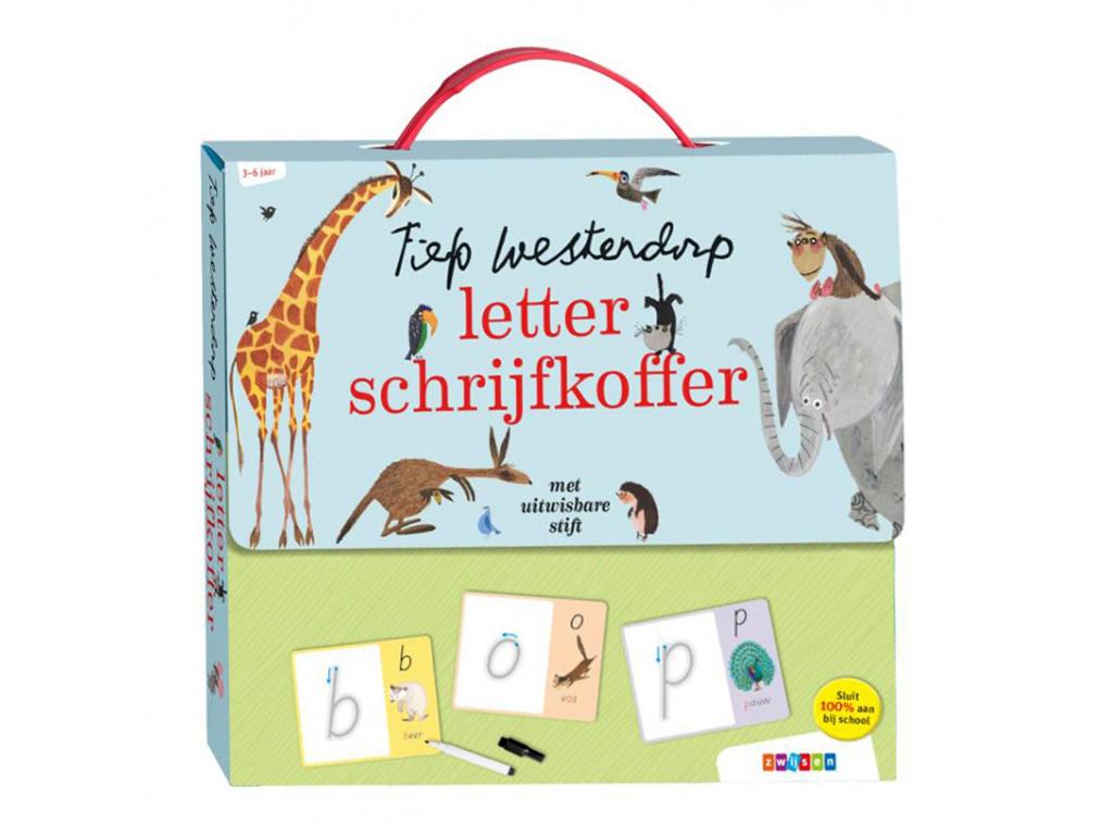 Ezzel a táskával a gyerekek játékosan tanulhatnak meg írni, az ábécé betűinek lemásolásával. Az írókártyák egy kis betűt, egy nagy betűt, egy állatillusztrációt Fiep Westendorp-tól és egy szót tartalmaznak. A kártyák azoknak a gyerekeknek is érdekesek maradnak, akik már tudnak olvasni. A kisebbek számára pedig előkészítő írási feladatok vannak.
