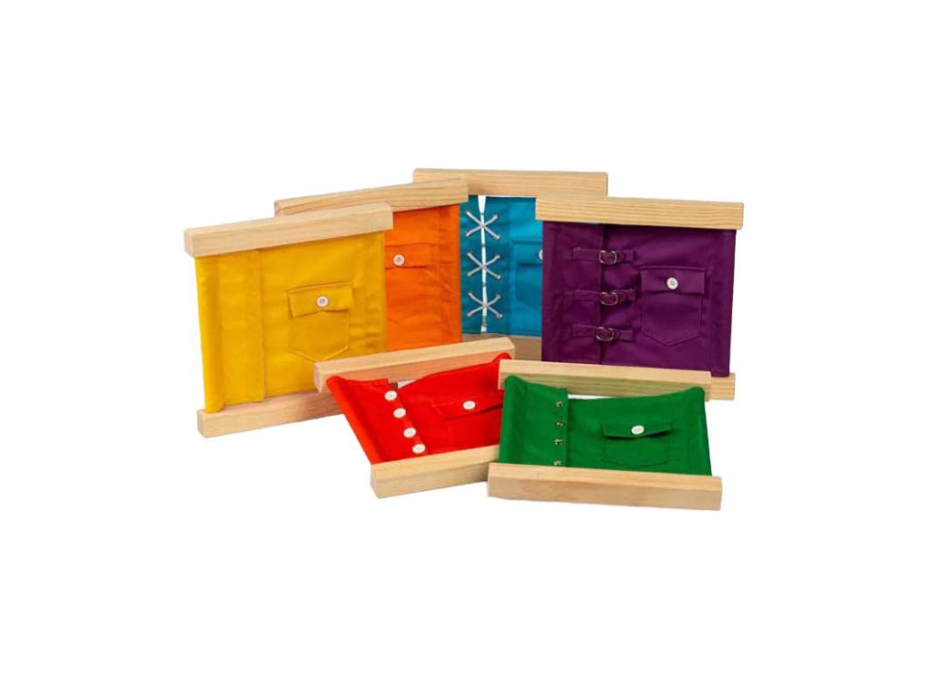 Tanítsa meg kisgyermekét önállóan öltözködni a hat darabos keretkészletünkkel. Minden keret más-más záródással rendelkezik, például csatokkal, nyomógombokkal és tépőzárakkal, valamint egy kis gombos tasakkal, amellyel a kicsik gyakorolhatnak. Ez a készlet nemcsak megtanítja a gyerekeket az öltözködésre, hanem segít nekik a finommotorika, a koncentráció, a türelem és a problémamegoldó képességek fejlesztésében is! Jellemzők Montessori játékokhoz való alkatrész Kiváló minőségű és fenntartható FSCŽ-tanúsítvánnyal rendelkező fa Nem mérgező festékekkel és lakkokkal festve 26,5 x 26,5 x 3 cm 3 éves kortól