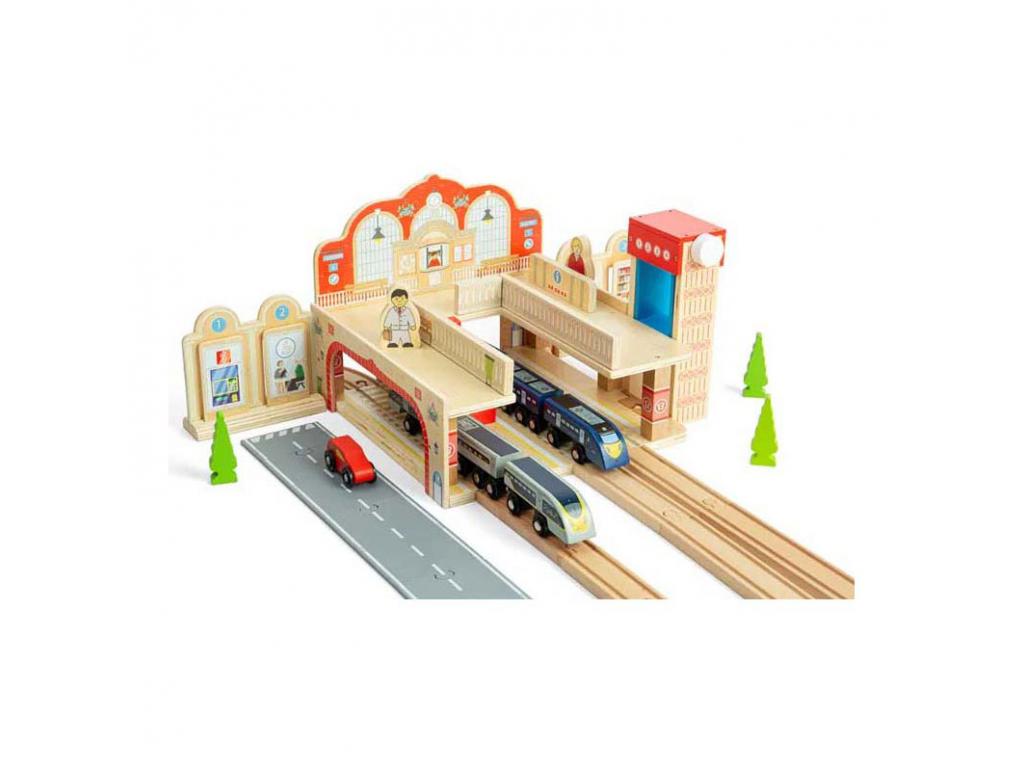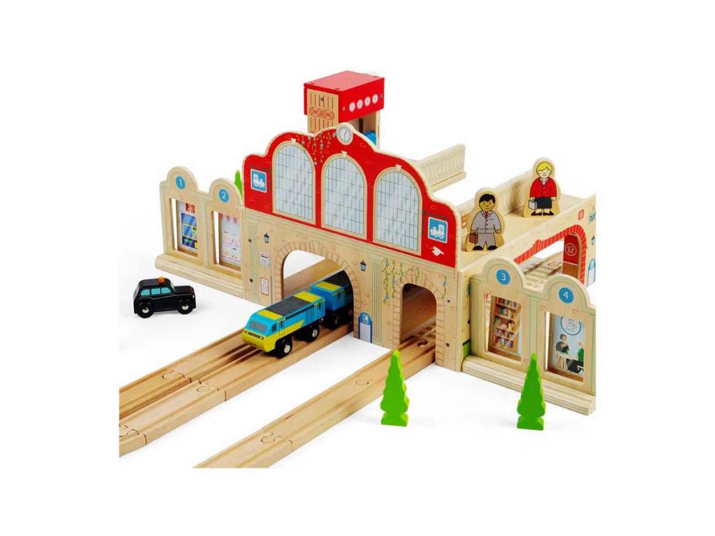 Bigjigs fa játékkészlet Grand Central Station vasútállomás