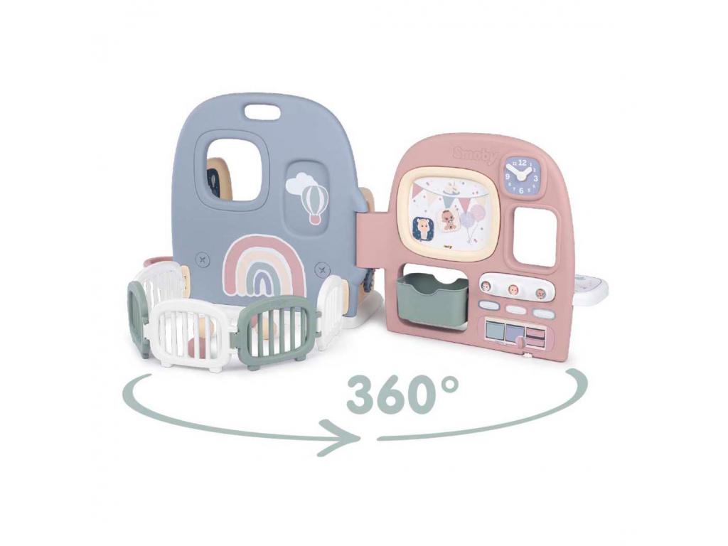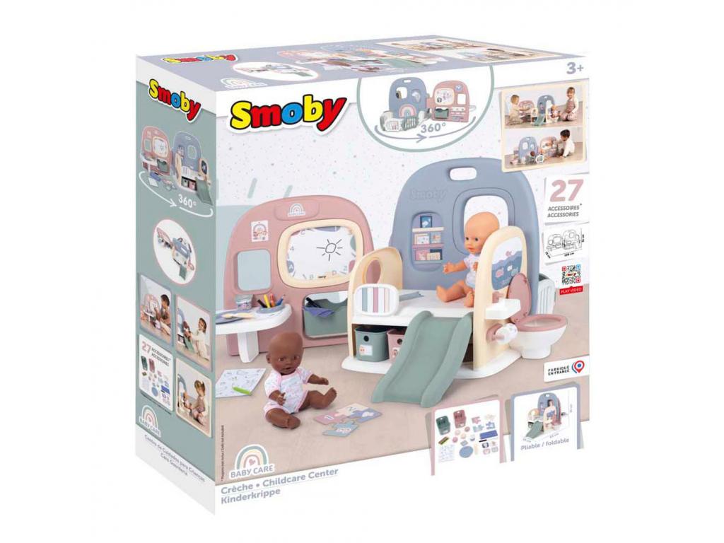 Babaápolási napközi babáknak, 5 különböző helyiséggel és 27 kiegészítővel. 3 éves kortól alkalmas.