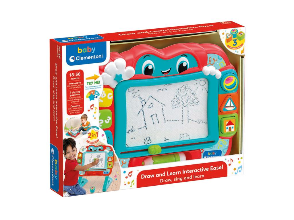 A Clementoni Baby 2 az 1-ben interaktív rajztábla órákon át tartó kreatív szórakozást biztosít! Hang- és fényeffektjeivel stimulálja gyermeke fantáziáját, motorikus képességeit és tanulási készségét. Tökéletes azoknak a kis művészeknek, akik szívesen fedezik fel a színeket és formákat!
