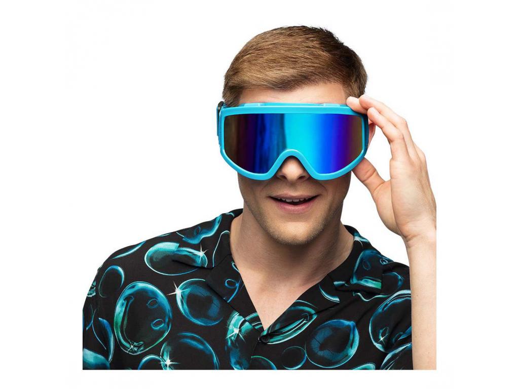 A Boland neonkék síszemüvege egy ünnepi kiegészítő, amely kiegészíti a jelmezedet témájú partikon és karneválokon. Műanyagból készült, állítható gumiszalaggal. Méretek: 22 x 9 cm.