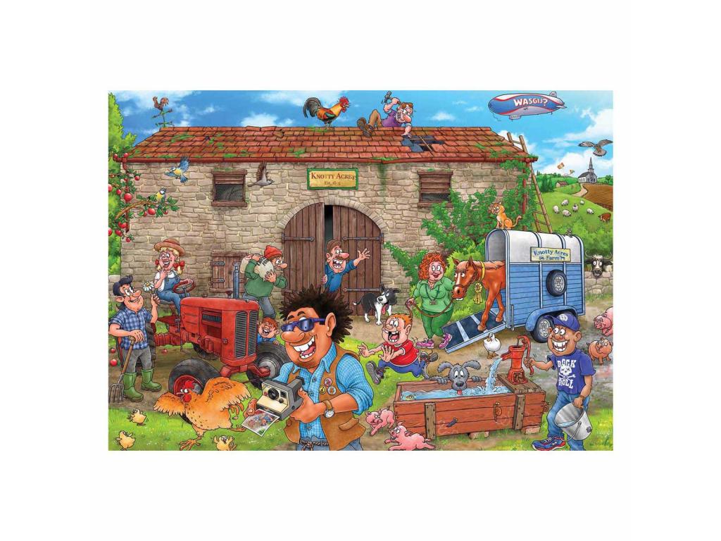 Üdvözöljük a Knotty Acres farmon, ahol a kakasok kukorékolnak, a traktorok dübörögnek a mezőkön, és a régi pajta tele van szerszámokkal, takarmánnyal és kíváncsi állatokkal. Az élet a farmon sáros és mozgalmas, de tele van bájjal, hangulattal és állandó zűrzavarral. Ahogy a évszakok változnak, úgy változik a vidéki élet is. Ez a régi pajta készen áll a modernizálásra, vagy egy teljesen másfajta változás áll előttünk? Nézz a jövőbe, és képzeld el magadnak ezt a farmot ma. Ez a jelenet, amelyet hamarosan kirakós játék formájában megismerhetsz! Jellemzők: 1000 darabos puzzle felnőtteknek Ne a dobozon látható képet rakd ki, hanem használd a fantáziádat és a Wasgij-t a megoldáshoz! Puzzle mérete: 68 x 49 cm A Wasgij-ről Ezek a Jumbo Wasgij puzzle-k kifejezetten felnőtteknek lettek kifejlesztve. Más puzzle-ktől eltérően a Wasgij-nál nem egyszerűen a dobozon látható képet állítod össze, hanem a fantáziádat használod a puzzle összeállításához! Három különböző koncepció létezik: Original, Mystery és Destiny. A Wasgij Destiny-nél a nyomokat és a képzelőerőd használod, hogy kiderítsd, mit hoz a jövő!