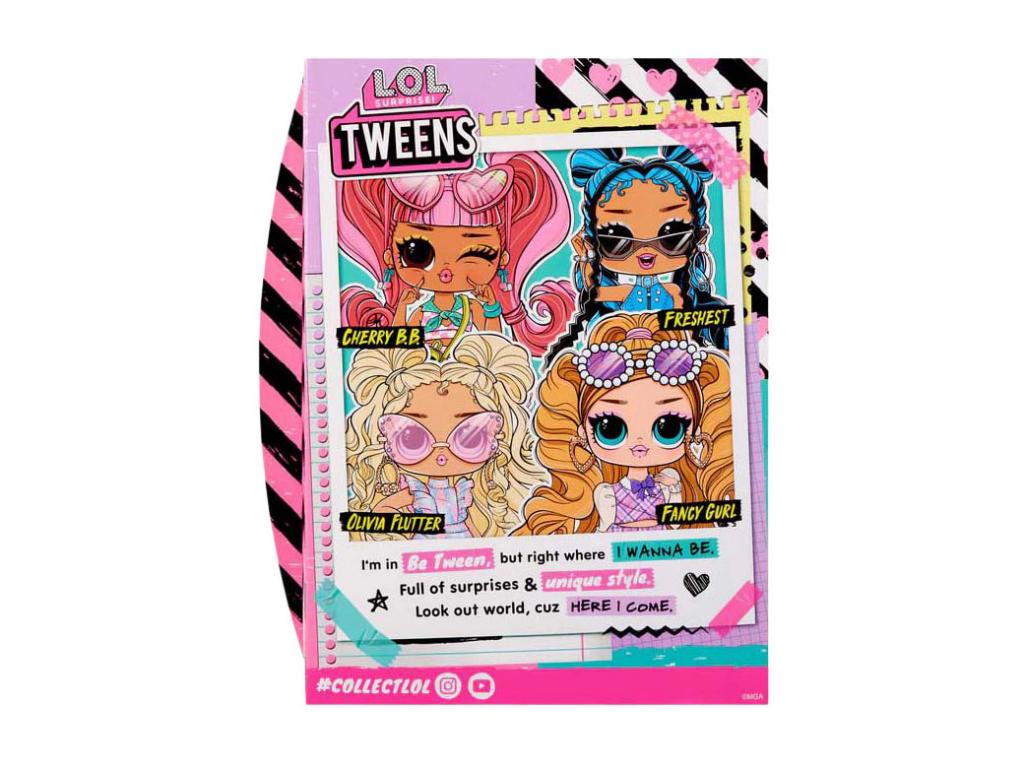 Közepén vagyok, de pontosan oda akarok jutni! Sok meglepetéssel és merész stílussal. Vigyázz, világ, jövök! Ismerd meg a legújabb L.O.L. Surprise! Core Tweens divatbabákat! Ezek a népszerű és szívmelengető tweenek új megjelenéssel, különböző frizurákkal és divatokkal jelennek meg! Fedezd fel, mi van benne, és csomagolj ki egy lenyűgöző Tweens divatbabát szupervicces meglepetésekkel, mint például egyedi divat, aranyos kiegészítők, stílusos cipők és még sok más! Gyűjtsd össze mind a 4 BFF-et!