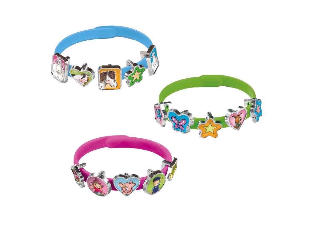 Fien & Teun csúszó karkötő szett 3 karkötővel és 18 medállal. 3 éves kortól alkalmas.