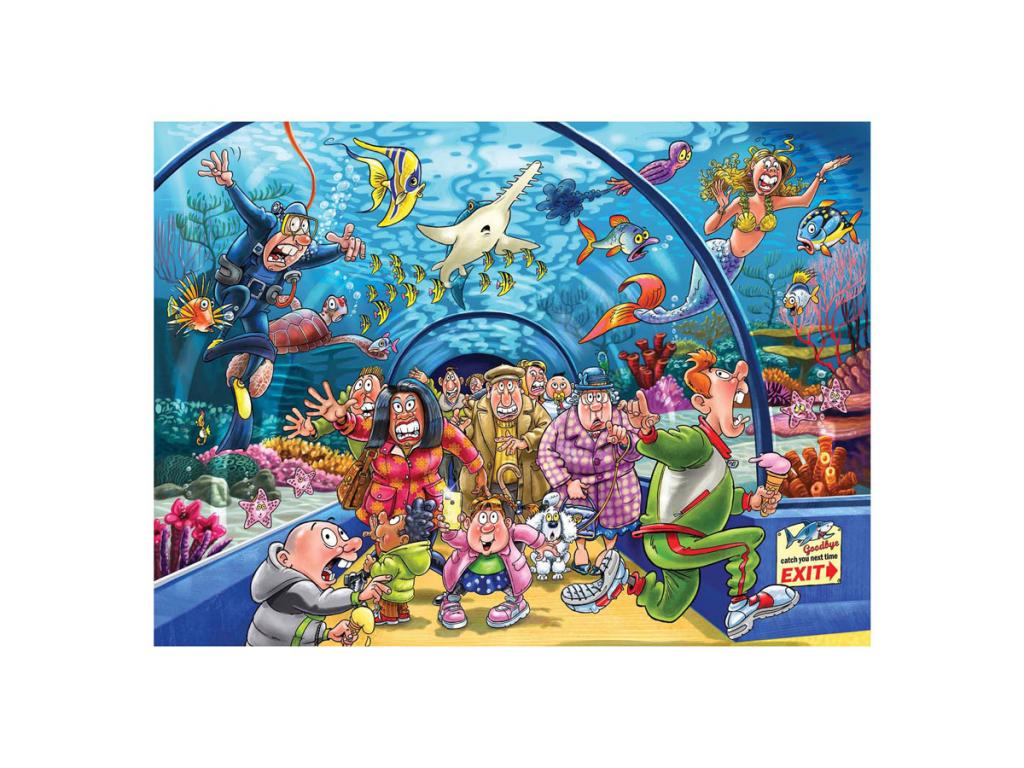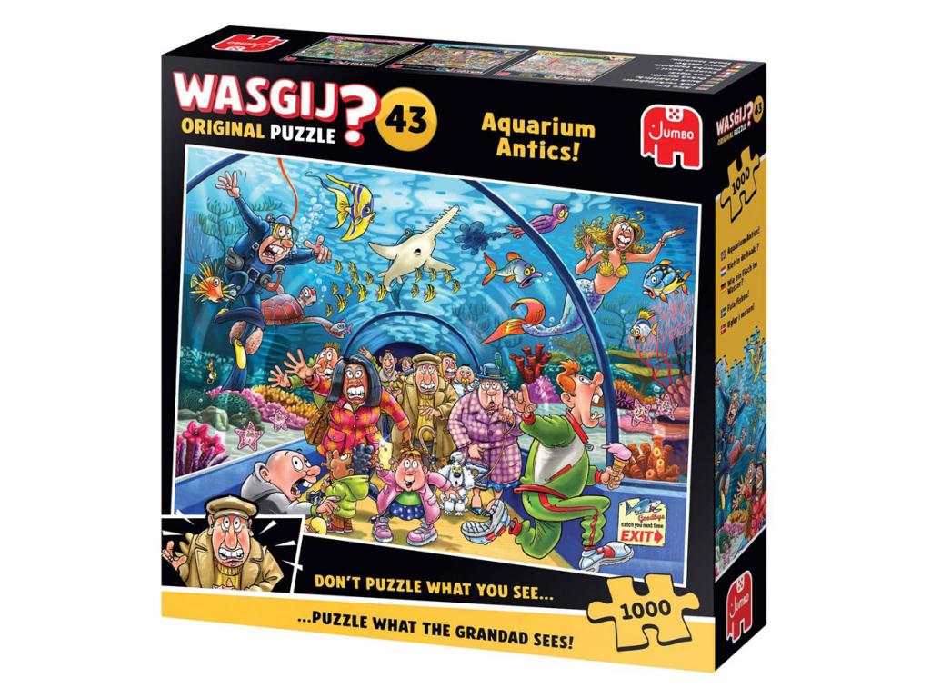 Jöjjön velünk, és fedezze fel az akváriumban a tenger alatti életet. Mindenféle furcsa és csodálatos fajjal, amelyeket közelről meg lehet figyelni, ez egy varázslatos kaland felnőtteknek és gyerekeknek egyaránt. Az óceáni alagútban Wasgij nagymama és nagypapa trópusi halak és teknősök mellett sétálhatnak el. Talán még egy sellőt is felfedeznek! De egy lény kissé túl közel került hozzájuk... Használja fantáziáját és a dobozon található utalásokat, hogy kiderítse, mi történik ezután. Ez a jelenet, amelyet ki kell raknia. Jellemzők: - 1000 darabos puzzle felnőtteknek - Ne a dobozon lévő képet rakd ki, hanem használd a fantáziádat, hogy összerakd a Wasgij megoldást. - A kész puzzle mérete: 68 x 49 cm A Wasgijről Ezek a Jumbo Wasgij puzzle-k kifejezetten felnőtteknek lettek kifejlesztve. Más puzzle-ktől eltérően a Wasgij-nál nem egyszerűen a dobozon látható képet állítod össze, hanem a fantáziádat használod a puzzle összeállításához! Három különböző koncepció létezik: Original, Mystery és Destiny. A Wasgij Mystery segítségével nyomok és a fantáziád alapján kitalálhatod, hogyan fog kinézni a jelenet a jövőben. A Wasgij egyedülálló koncepciója serkenti a felnőttek fantáziáját!
