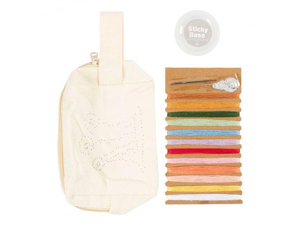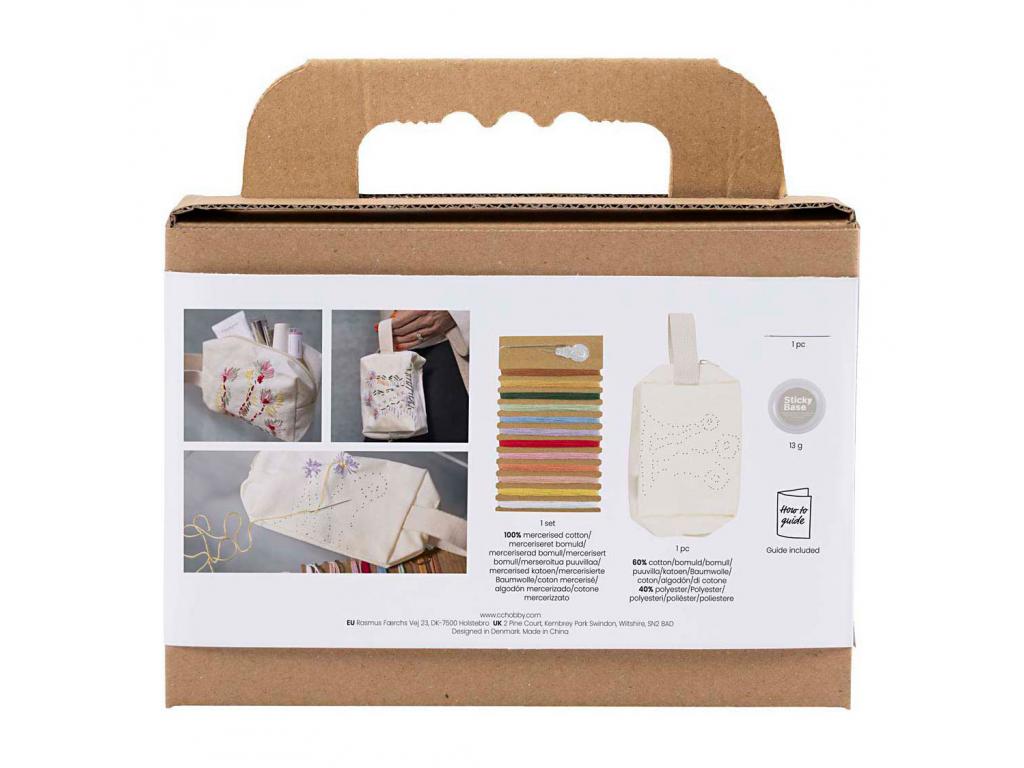 Kreatív készletünkkel gyönyörű virághímzésekkel díszítheti kozmetikai táskáját. A készlet tartalmazza az összes szükséges anyagot és útmutatót.