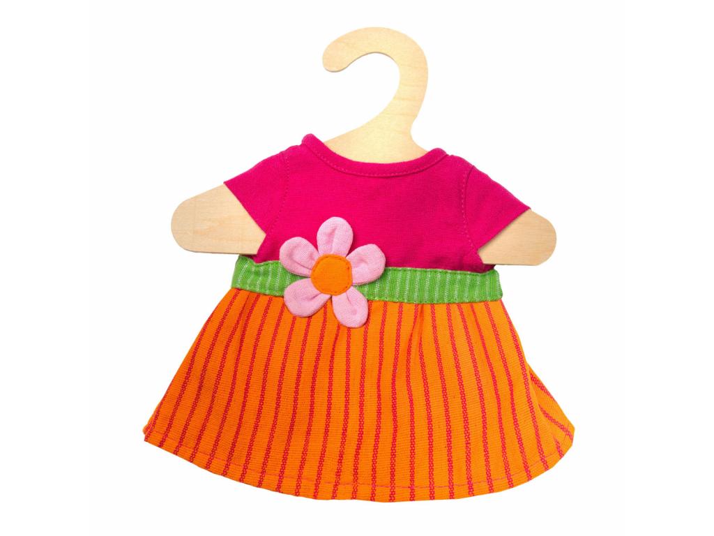 A Maya nyári ruha élénk rózsaszín és narancssárga színeivel, valamint rózsaszín virágdíszítésével nyűgözi le a tekintetet. Ez a ruha a legtöbb, kereskedelemben kapható, 2835 cm-es babára illik. A terméket fa vállfán szállítjuk.&Anyag: 100% kézzel szőtt pamut. Méret: 28-35 cm. Korosztály: 3 éves kortól alkalmas. Csomagolás: A termék praktikus fa akasztón kerül kiszállításra.