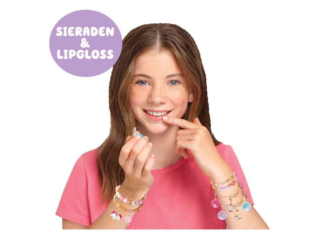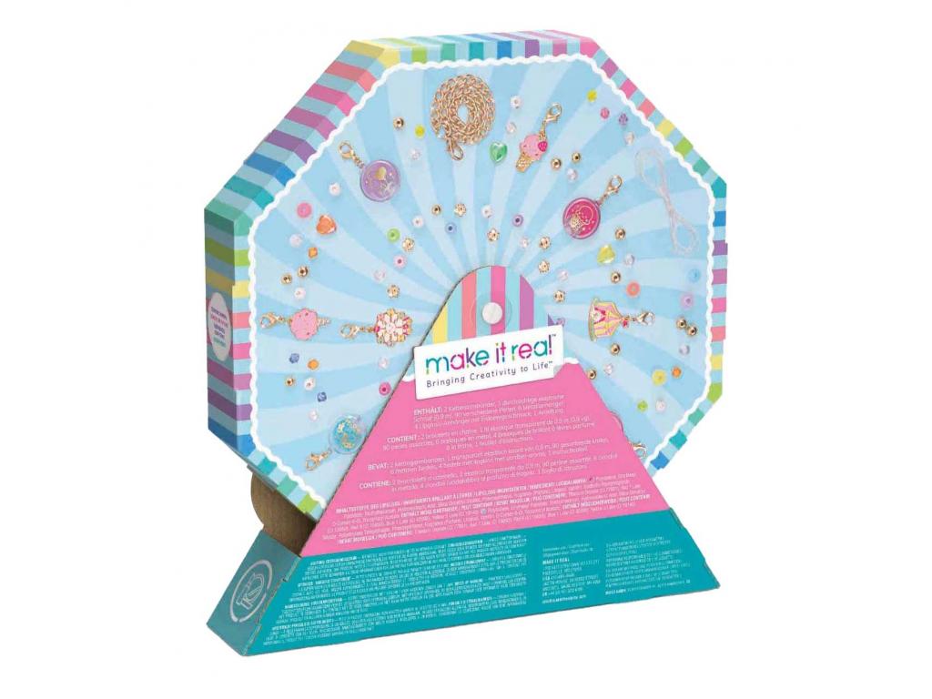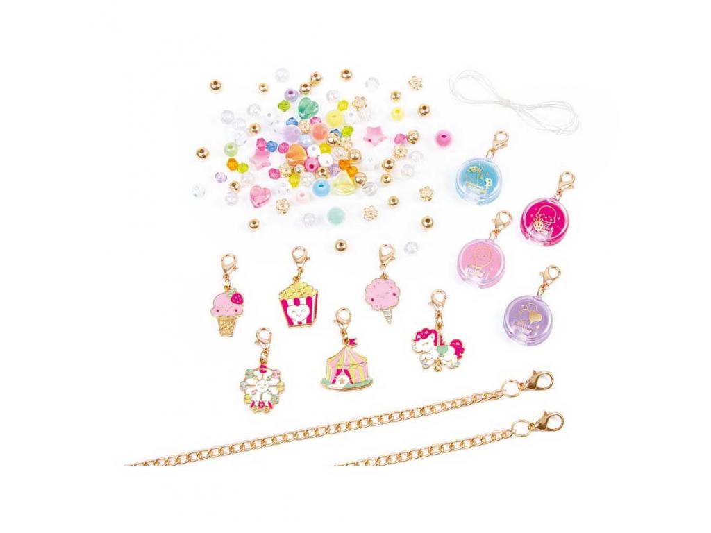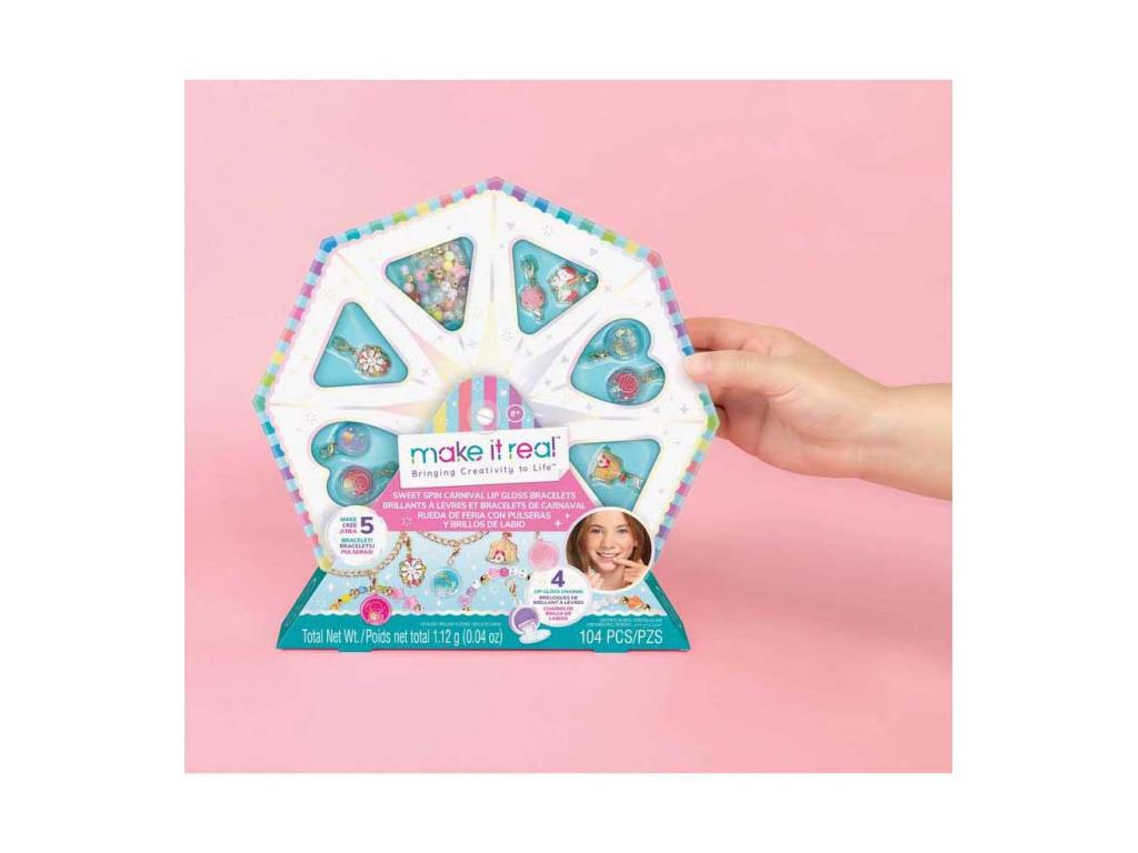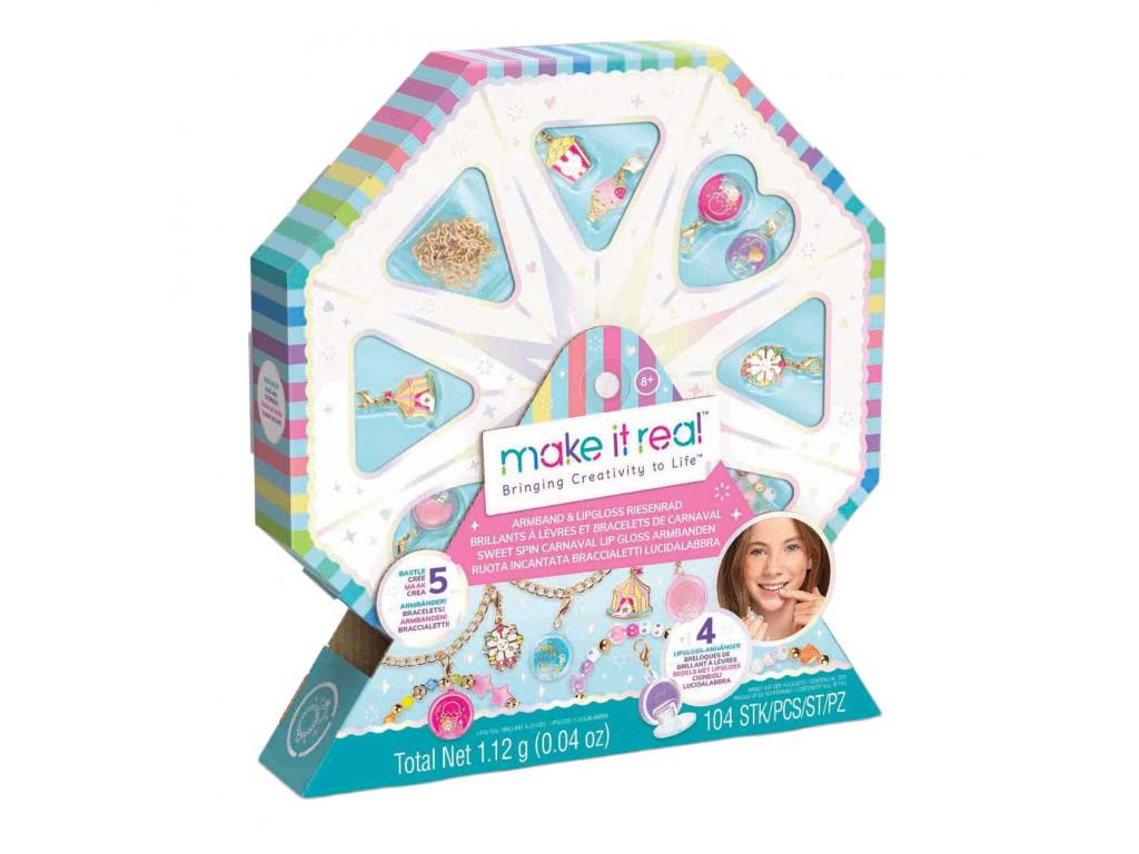 Készülj fel egy kreatív bulira a Sweet Spin Carnival szájfény-karkötő szettel! Szereted a kézműveskedést, az ékszereket és a szájfényeket? Akkor ez a kombináció pont neked való. A csomagolás egy óriáskerék ihlette, és forog így a játékkal ugyanolyan szórakoztató, mint a kézműveskedéssel. Ezzel a vidám szettel nem kevesebb, mint öt egyedi karkötőt készíthetsz, tele színes medálokkal és gyöngyökkel, valamint négy eperillatú szájfény medált! Így nemcsak stílusos leszel, de a szájfényed is mindig kéznél lesz.