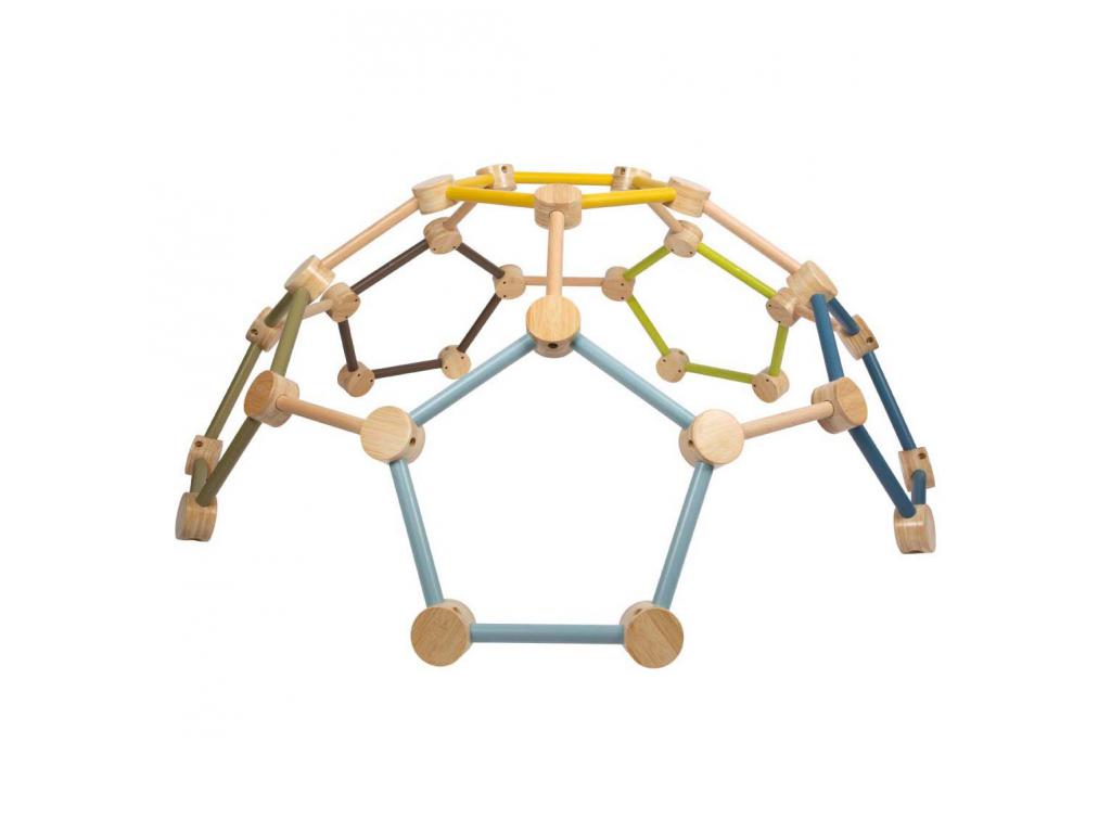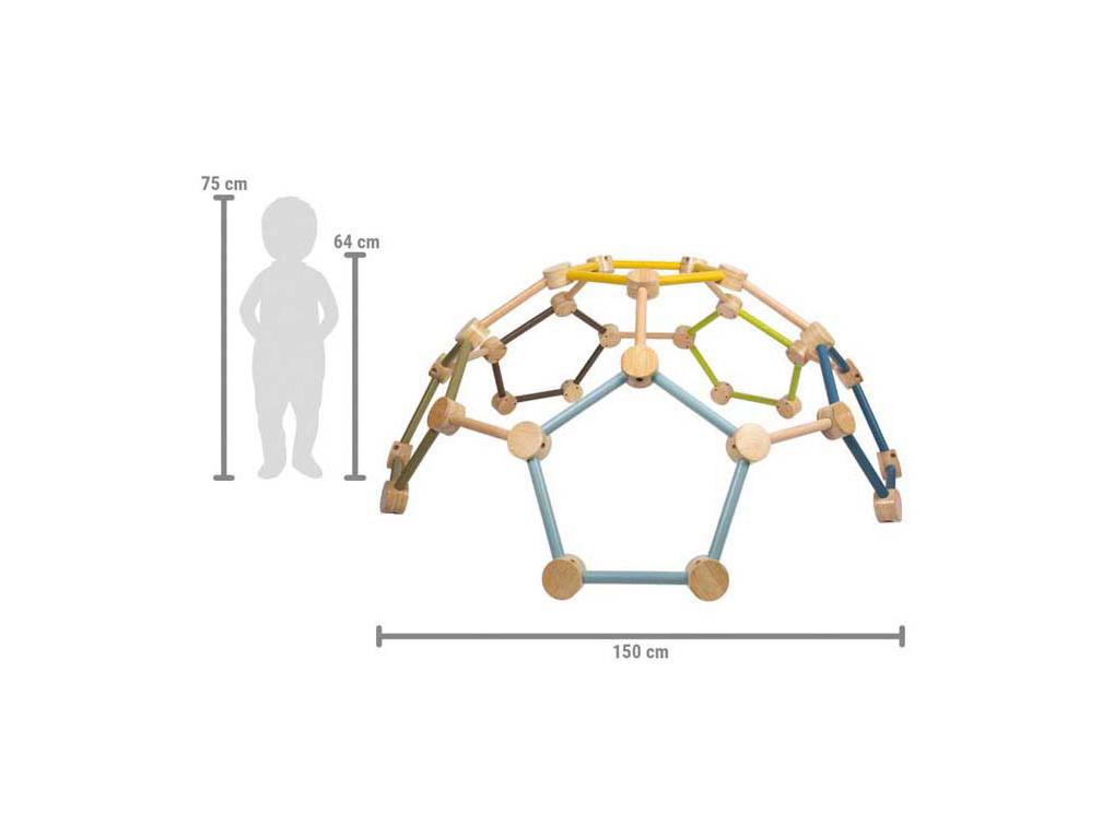 Hódítson meg új magasságokat a szórakozás terén! Ez a mászó geodóm egy sokoldalú mászóeszköz, amely tökéletes társ a kalandvágyó gyermekek számára. Akár mászókájaként, titkos rejtekhelyként vagy fantáziadús szerepjátékok helyszínéül ez a geometrikus mászó kupola végtelen játéklehetőségeket és számos lehetőséget kínál a motorikus képességek fejlesztésére. Tartós fa. Az egyszerű szerkezetnek köszönhetően a mászó kalandorok gyorsan nekiállhatnak a mászásnak, míg a stabil összeköttetések garantálják a magasba mászók biztonságát. Robusztus tömör fából készült, a természetes, kezeletlen fa és a jellegzetes kaland színek kombinációjával a Geodom harmonikusan illeszkedik minden gyerekszobába, és lenyűgöző tartósságával és vonzó megjelenésével győzi meg a felhasználókat. Ez egy innovatív aktív játék, amely órákon át tartó szórakozást nyújt. Egyszerű összeszerelés előre összeszerelt elemekkel. Jó szórakozást a mozgáshoz! Ez a mászó kupola, más néven Geodom, nemcsak egy remek fa játék, hanem egy befektetés az egészséges és aktív gyermekkorba is, mert tökéletesen ötvözi a mozgást, a szórakozást és a biztonságot. A stabil fa rudakon mászva a gyerekek egyensúlyukat, erőnlétüket, koordinációjukat és motorikus képességeiket fejlesztik. Méretek: kb. 150 x 150 x 64 cm. 24 hónapos kortól alkalmas.