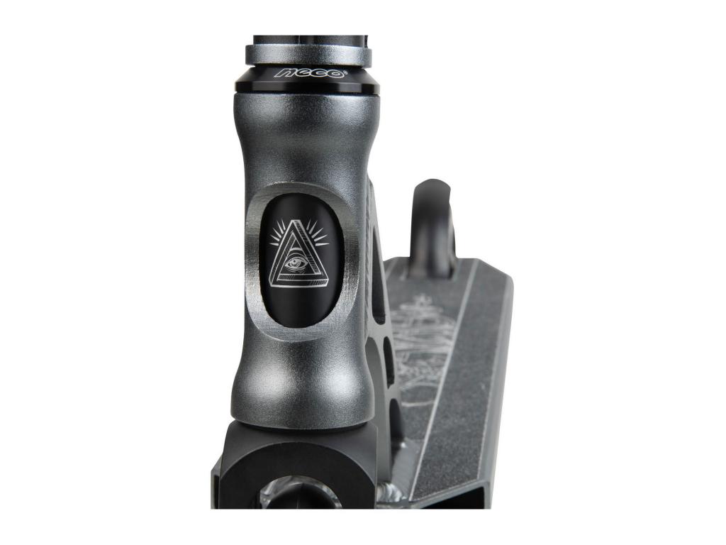 Ismerje meg a HUDORA Stunt-Scooter 360 Pro-t, amely minden szükséges tulajdonsággal rendelkezik: minőség, sebesség és stílus. A deszka és a túlméretezett kormány erős T6 alumíniumból készül, maximális irányíthatóságot és látványos trükköket biztosítva. A 360°-os kormányzás Neco kormánykészlettel a legvadabb mozdulatokat is lehetővé teszi. A 110 mm-es, nagy visszapattanású kerekek alumínium felniken további lendületet adnak. A váz nemcsak rendkívül stabil, hanem lézerrel vágott részletekkel ellátott, menő dizájnnal is rendelkezik. Maximális súly: 100 kg.