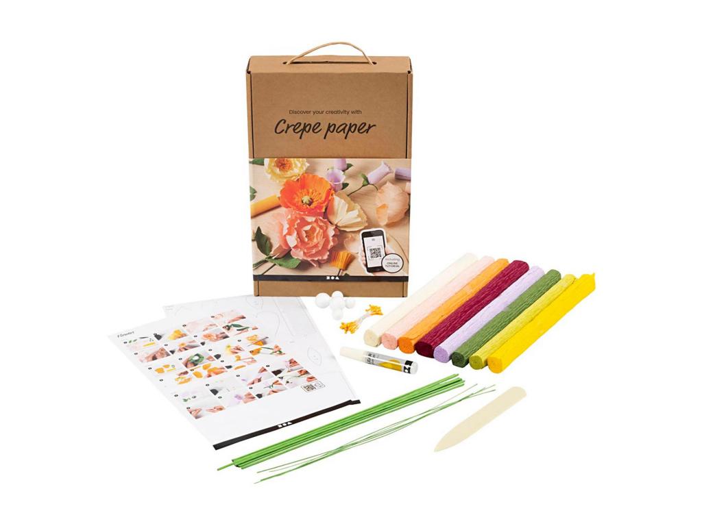 Tanulja meg, hogyan készíthet gyönyörű virágokat krepp papírból ezzel a készlettel, amely mindent tartalmaz, amire szükség van a kezdéshez. A doboz sablonokat és inspirációs lapokat is tartalmaz. Ha beolvassa a QR-kódot, számos videó útmutatót talál, amelyek lépésről lépésre bemutatják a különböző technikák elsajátítását. Gondoskodjon arról, hogy rendelkezzen saját alacsony hőmérsékletű ragasztópisztollyal minden egyéb szükséges eszköz megtalálható itt