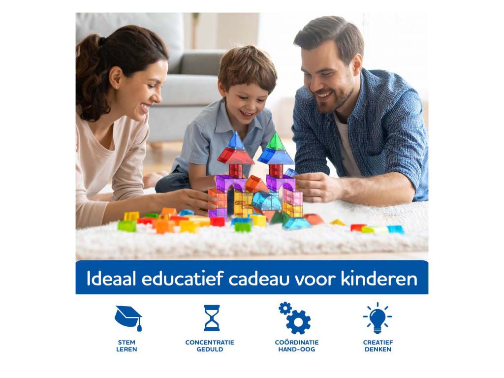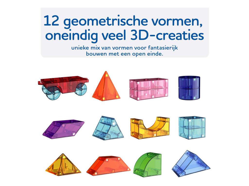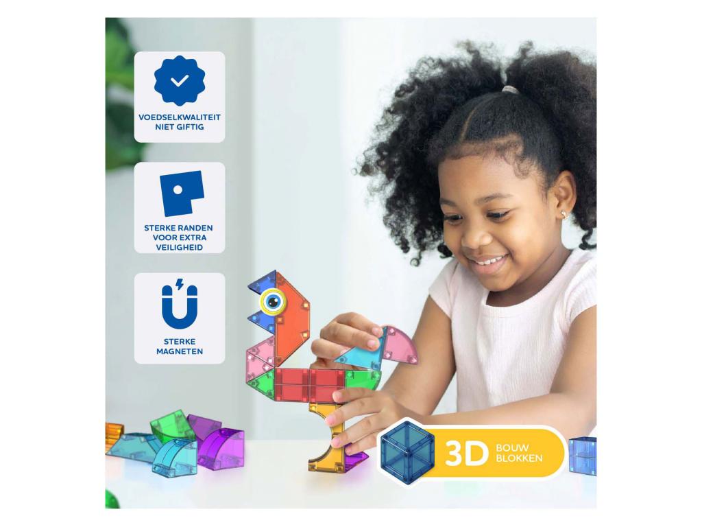 85 darabos mágneses építőelem-készlet színes geometriai formákban. Műanyagból, erős mágnesekkel. Elősegíti a kreativitást és a motorikus képességeket. 3 éves kortól alkalmas.
