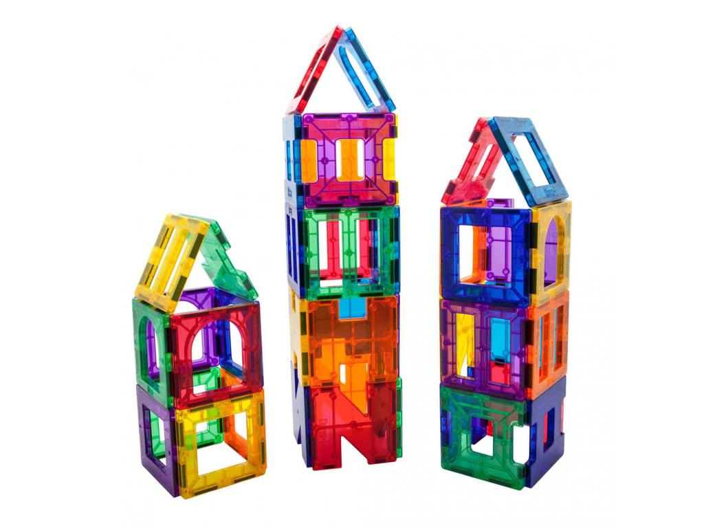 Legyen szó színes toronyról, fantáziadús álomvárosról vagy komplex 3D-konstrukciókról a PicassoTiles-szel minden lehetséges. Az építőelemek mágneses tulajdonságai biztos rögzítést biztosítanak és számtalan tervezési lehetőséget nyújtanak.