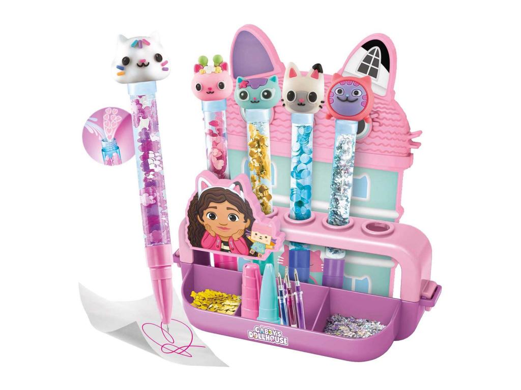 A Clementoni Gabby Pen Creation Studio segítségével a 6 évesnél idősebb gyerekek 5 vidám tollat készíthetnek. A készlet 25 kiegészítőt tartalmaz Gabi Babaháza stílusban. Kreatív kézműves szórakozás a kedvenc figurákkal.