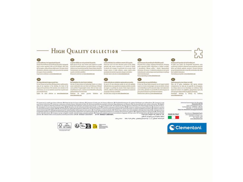 A legvonzóbb képek, a legnagyobb méretválaszték és a Clementoni jellegzetes minősége egy olyan termékcsaládban, amely a puzzle szerelmeseinek mindenhol az arany standard. A Clementoni mindig figyel a környezetre, ezért nagymértékben újrahasznosított anyagokat használ, elkerülve ezzel a környezetkárosító komponensek használatát. Olaszországban gyártva. Jellemzők Panorámás puzzle: Wanaka arany tükröződései kiváló minőségben Darabszám: 1000 darab Méretek: 33 x 98 centiméter