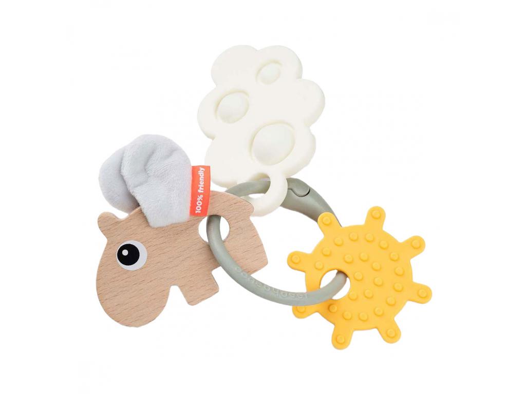Happy Clouds érzékszervi aktivitási gyűrűnk úgy lett kialakítva, hogy textúráival, színeivel és formáival stimulálja babád összes érzékszervét. Ideális 3 hónapos kortól. Az interaktív gyűrű egy fa Ozzo-ból áll, szövet szárnyakkal, egy szilikonból készült pop harapós felhővel és egy texturált nappal. Ez elősegíti a finom motorikus képességek és a kéz-szem koordináció fejlődését. A különböző textúrák enyhítik a fogzás okozta fájdalmat, míg a rázáskor hallható játékos csörgő hang stimulálja a kisgyermek hallását. Kis kezek számára könnyen megfogható, tökéletes szórakozás útközben. Biztosítson szórakozást babájának érzékszervi játékokkal ezzel a multifunkcionális aktivitási gyűrűvel, amely a fejlődést elősegítő előnyöket ötvözi az izgalmas szórakozással. Jellemzők A Happy Clouds érzékszervi aktivitási gyűrű különböző textúrákkal, színekkel és formákkal stimulálja a baba összes érzékszervét Ajánlott 3 hónapos kortól, vagy amikor a baba elkezd megragadni a tárgyakat Tartalmaz egy fa Ozzo-t szövet szárnyakkal, egy szilikonból készült pukkanó fogzási felhőt, egy napot és egy műanyag szerkezetű gyűrűt Kis kezek számára könnyen megfogható, elősegíti a finom motorikus képességek és a kéz-szem koordináció fejlődését A különböző textúrák kiválóan alkalmasak az íny stimulálására a fogzás idején Rázza meg a gyűrűt, és hagyja, hogy a csörgő hang stimulálja a baba hallását Ideális szórakozás útközben. Ajánlott életkor : 3 hónap felett . Méret: 15 x 10 x 7,5 cm. Ápolás: Puha, nedves ruhával törölje le. Ne merítse vízbe.