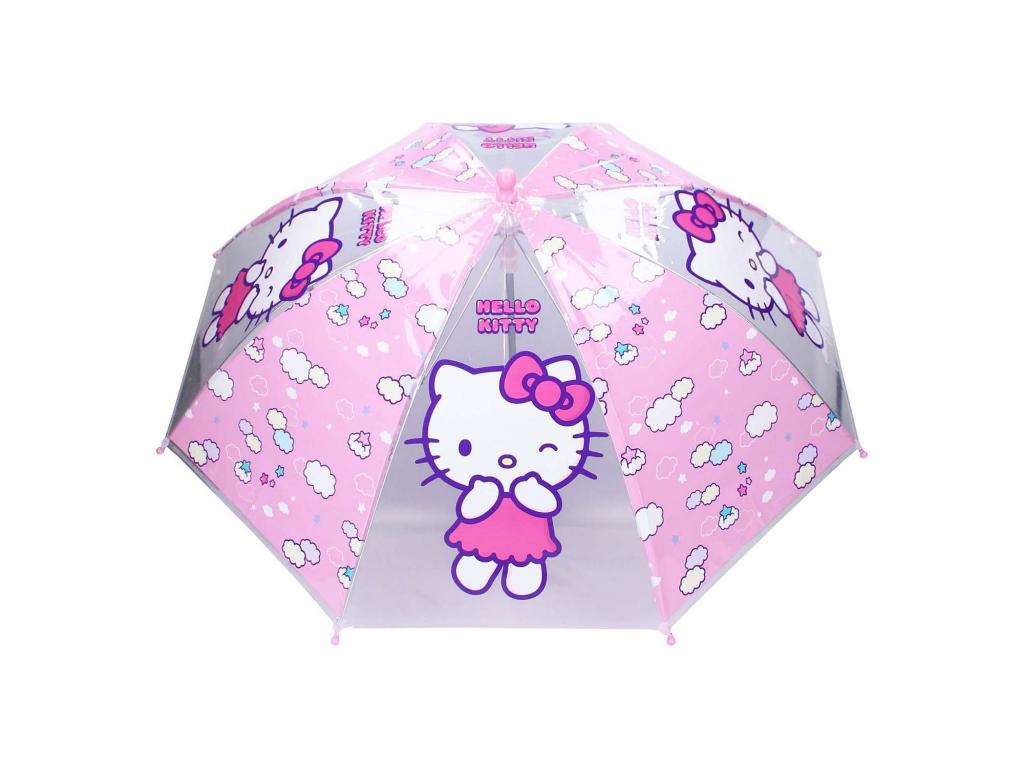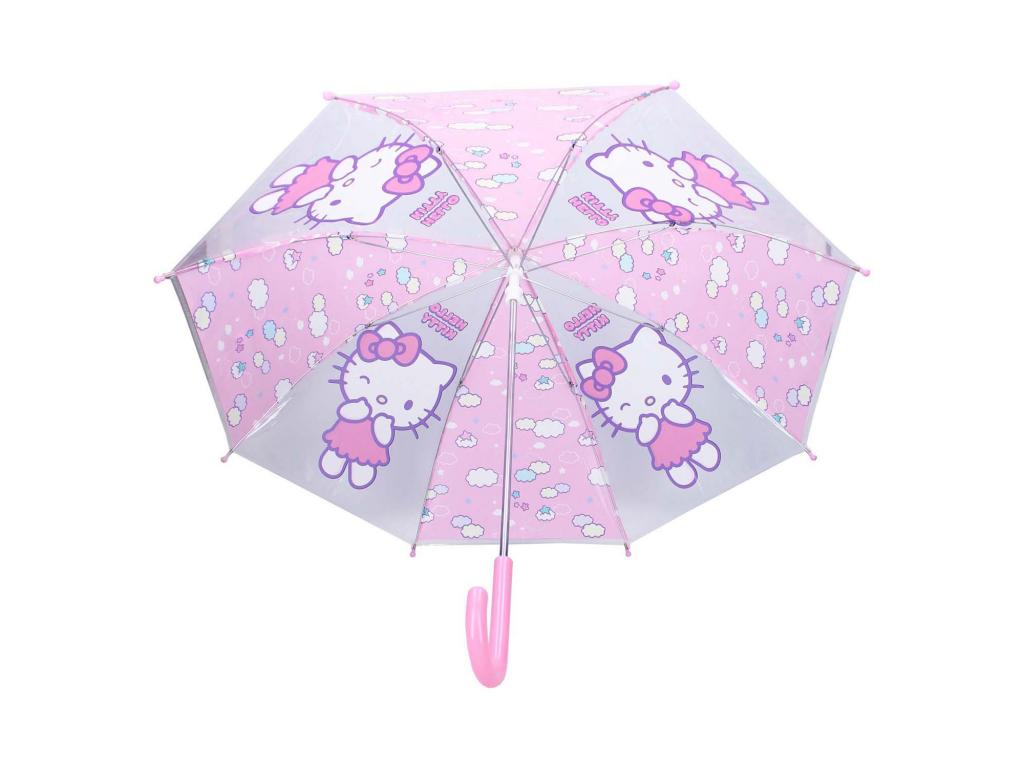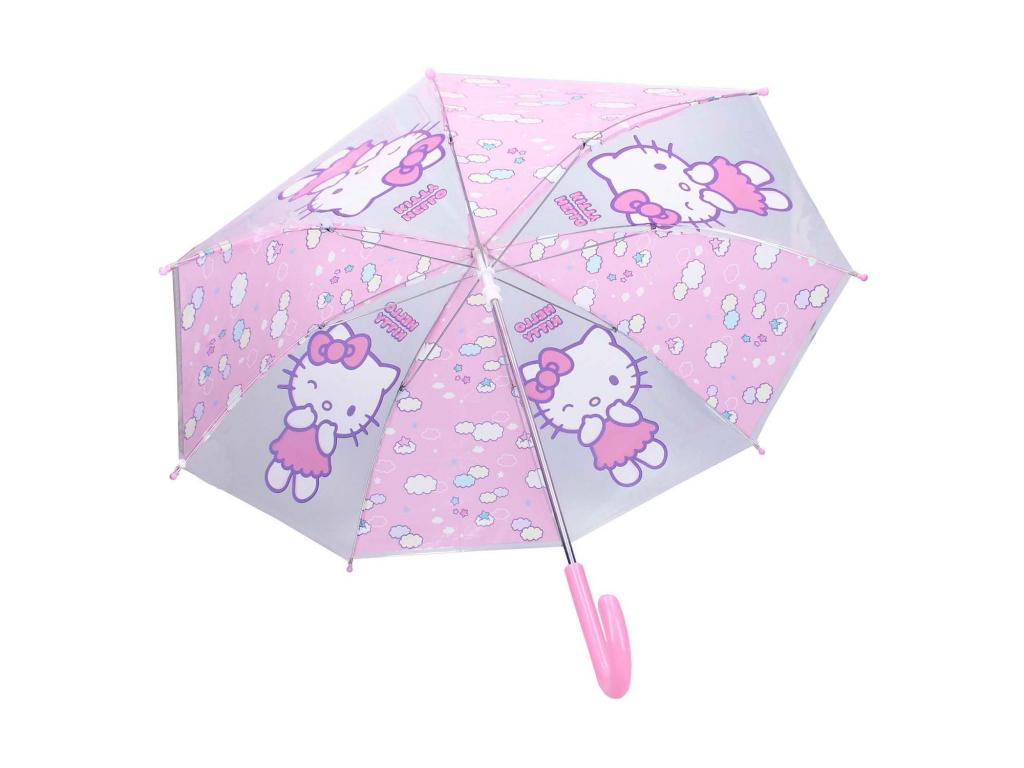Ezzel a Hello Kitty esernyővel minden kirándulás esőben gyerekjáték lesz. Az esernyő rózsaszín és átlátszó csíkokkal és rózsaszín fogantyúval rendelkezik. A cuki Hello Kitty vonzza a tekintetet. A rózsaszín csíkokon dekoratív kis felhők és csillagok láthatók. Mindez együtt egy színes, vidám egészet alkot, amellyel gyermeke szívesen megy ki a szabadba. A kerek fogantyúnak köszönhetően az esernyő jól illeszkedik a kézbe. Az alsó részen található kupakoknak köszönhetően pedig gyermeke nem sérülhet meg. Az esernyő könnyű és egyszerűen összecsukható, így alig lesz szüksége anya vagy apa segítségére, hogy kimehessen vele a szabadba.