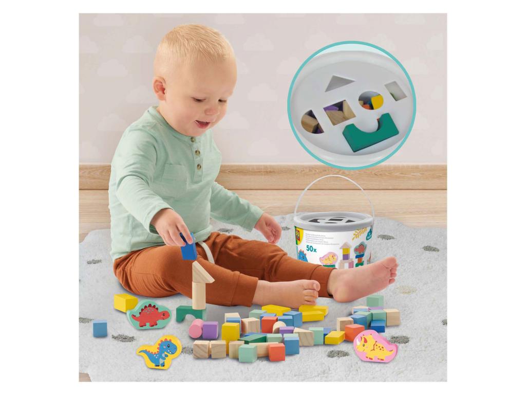 Hagyja, hogy a kicsik építsenek és fantáziáljanak a fa építőelemekből álló Dinos - hordó 50 darabbal! A hordóban 50 fa építőelem található modern színekben, köztük 3 nyomtatott dinoszaurusz figura. Ezzel a készlettel a gyerekek játékosan tornyokat, házakat és más építményeket építhetnek. Elősegíti a szórakozást, a térbeli képzelőerőt és a motorikus képességeket. Játék után az építőelemeket egyszerűen el lehet rakni a hordóban. A hordó fedele egyben formaszortíróként is funkcionál, így az építőelemeket a megfelelő formában lehet a hordóba helyezni. Tökéletes azoknak a gyerekeknek, akik szeretnek építeni és imádják a dinoszauruszokat!