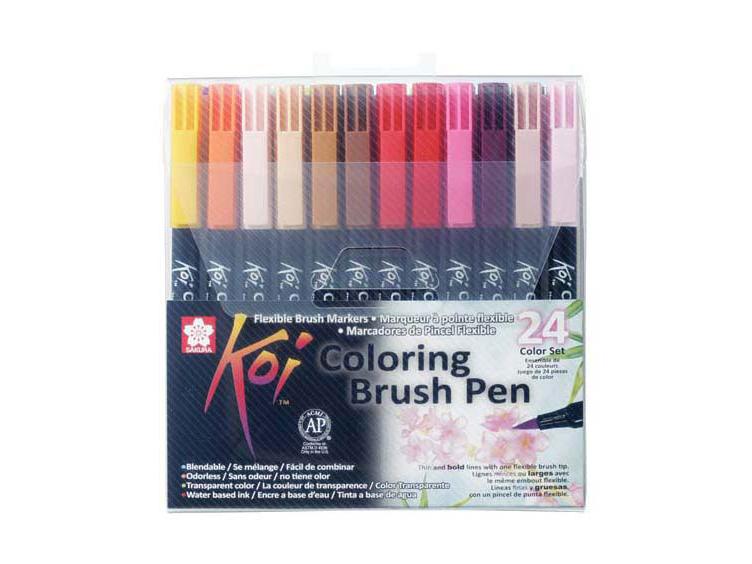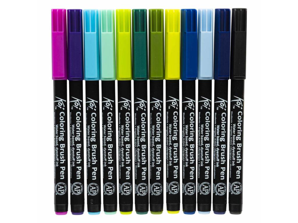 Exkluzív szett 24 színnel a Koi gazdag színpalettájából. A Koi Coloring Brush Pens ecsetes tollak élénk színekkel egészítik ki a vázlatokat, naplók, rajzfilmek, illusztrációk vagy bélyegek. A 48 átlátszó tinta színe könnyen keverhető egymással, így számtalan színárnyalat és effektus hozható létre. A Koi Coloring Brush Pens ecsetek rugalmas, szilárd ecsethegygel rendelkeznek, amelynek nyomását a hegyre gyakorolt nyomás szabályozásával könnyedén lehet változtatni, így különböző vastagságú vonalak rajzolhatók. Használat után az ecsethegy visszanyeri eredeti alakját.
