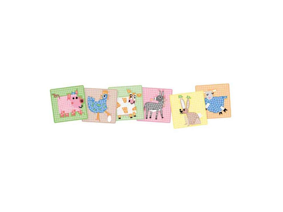 A tökéletes készlet kis gazdáknak! A Playmais mozaik kézműves készlet több mint 2300 színes Playmais kockát és 6 sablont tartalmaz. A malac, a csirke, a tehén, a szamár, a nyúl és a juh segítségével a farmot a gyerekszobába varázsolhatja.