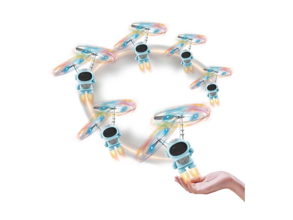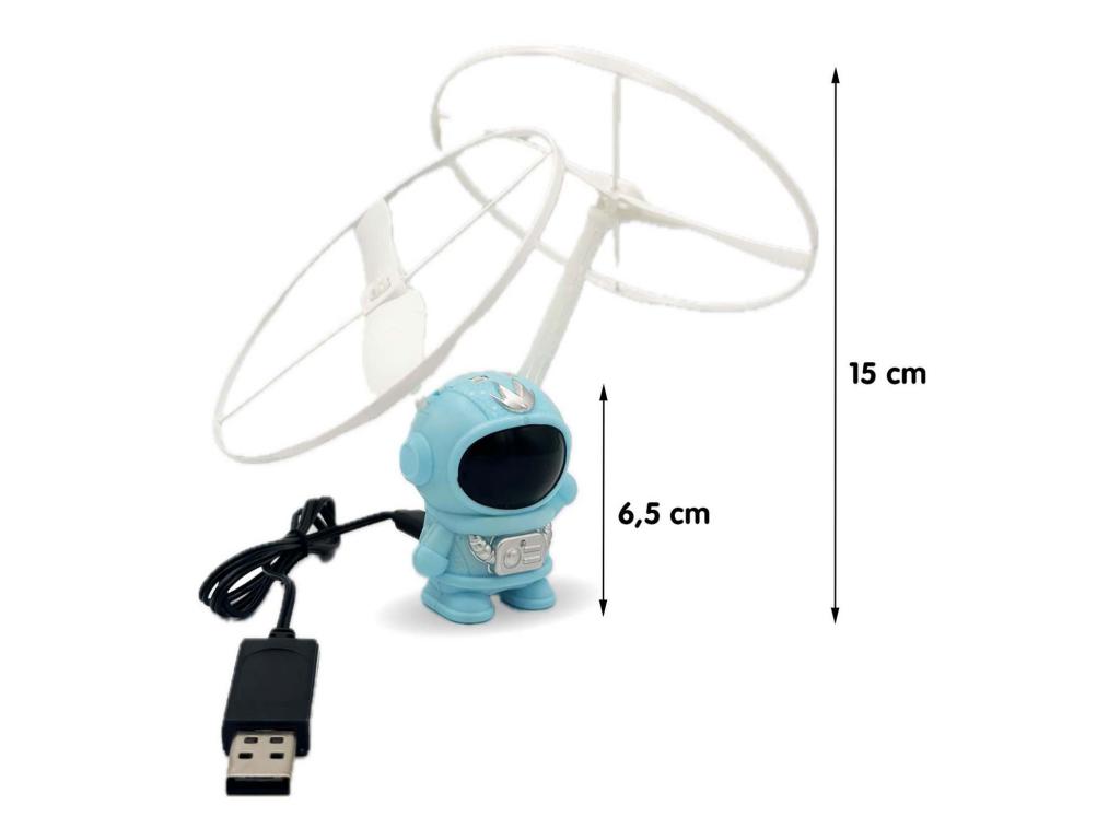 Engedd repülni ezt az űrhajóst a kezed felett, és hajts végre vele menő mutatványokat! A kék űrhajós LED-es lámpákkal és kettős propellerekkel van felszerelve a stabil repülés érdekében. A lába alatt található érzékelő a levegőben tartja, ha a kezedet alá tartod. Rögzítsd a propellereket, töltsd fel az űrhajóst, és engedd repülni a levegőben! A beépített 3,7 V-os LiPo akkumulátor a mellékelt USB-kábellel könnyen feltölthető. Korhatár: 8 év felett.