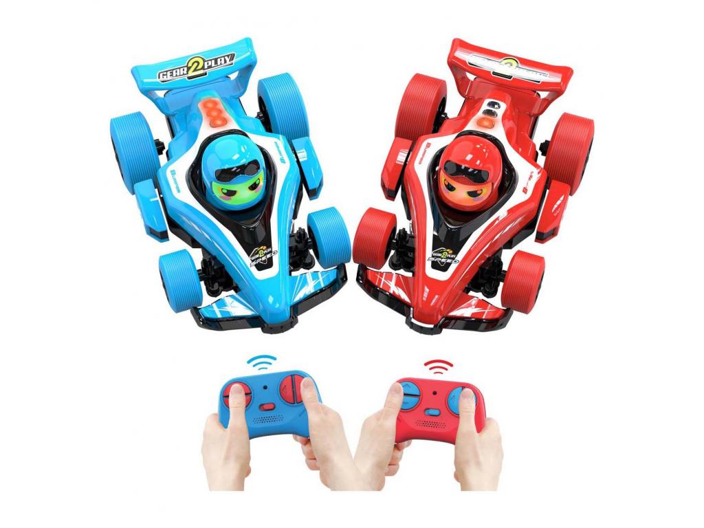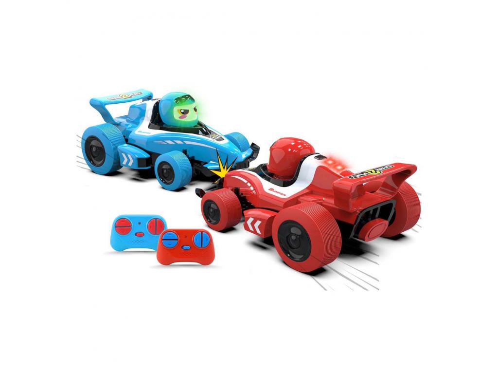 Ezek a menő távirányítású Formula 1 versenyautók tökéletesek izgalmas ütközős párbajokhoz a barátaiddal. A vezérlővel könnyedén irányíthatod a piros vagy kék versenyautót minden irányba. Kezdődik az izgalmas ütközős párbaj az ellenfeleddel! Próbáld elkerülni az ellenfeled támadását, mert ha az autódat eltalálják az egyik három ütközési zónában, akkor elveszítesz egy életet!