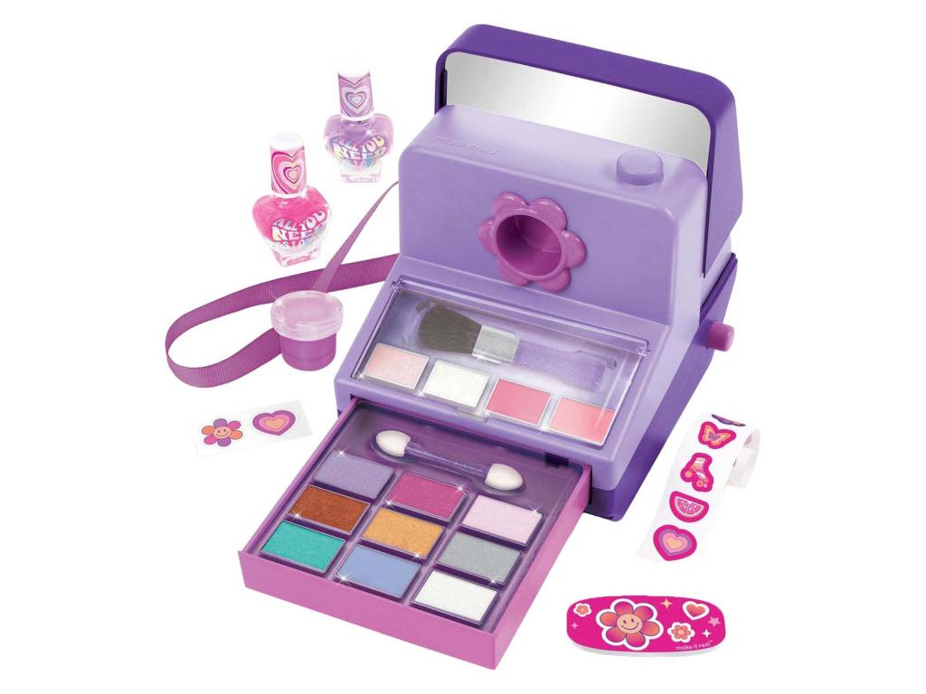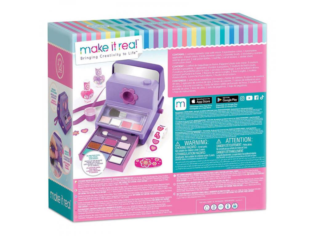 A fiatal divattervezők igazán jól szórakozhatnak ezzel a csillogó sminkkészlettel. Ebben a praktikus és különösen szórakoztató sminktáskában, amelyben egy kamera alakú tükör is található, bárhová magaddal viheted a sminkkészletedet! A táska tele van szépségápolási és stílusos kiegészítőkkel, amelyekkel lenyűgöző megjelenést varázsolhatsz magadnak. Találsz benne szemhéjfestéket, pirosítót, testcsillámot, körömlakkot, szájfényt és még sok minden mást! Ez a csillogó sminkkészlet remek ajándékötlet stílusérzékeny tinédzsereknek akár születésnapra, ünnepekre, vagy csak úgy. Akár otthon, akár barátoknál készülődsz ez a készlet mindent tartalmaz, amire szükséged van, hogy felfedezd kreativitásodat és személyes stílusodat. Ragyogtasd meg szemedet, ajkaidat, arcodat és testedet!