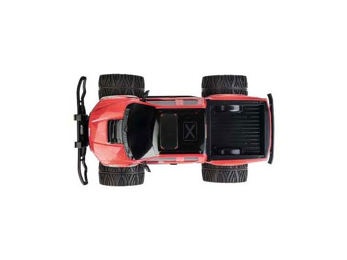 Offroad-erőgép! Az új fekete-piros kivitelben a Ford F-150 Raptor bizonyítja, hogy igazi offroad-hős, és akár 18 km/h sebességgel száguld át a terepen. A 39,5 cm hosszú terepjáró minden terepen jól teljesít. A menő 2,4 GHz-es távirányító digitális arányos funkcióval intuitív és pontos irányítást tesz lehetővé. Akár 40 perces üzemidővel, légtömlős gumiabroncsokkal és teljes felfüggesztéssel az offroader minden kalandra készen áll. A mellékelt vezérlővel, újratölthető LiFePo4 akkumulátorral, USB-töltőkábelrel és két AAA elemmel az autó Ready to Run állapotban van.