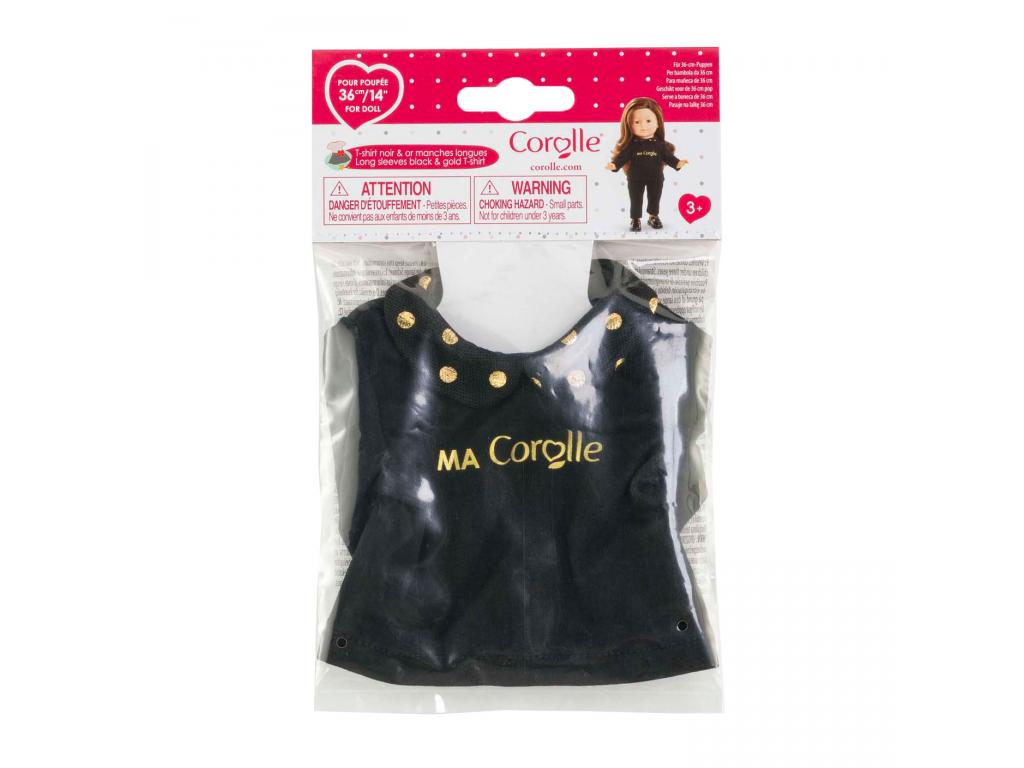 Corolle fekete-arany póló babáknak, 36 cm. 3 éves kortól.