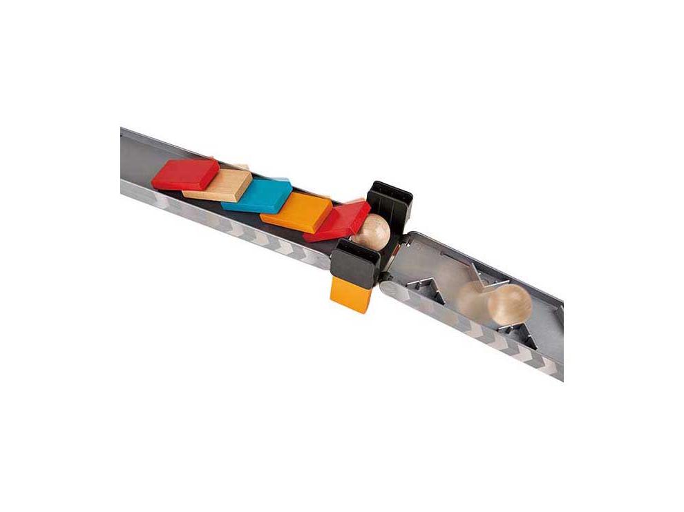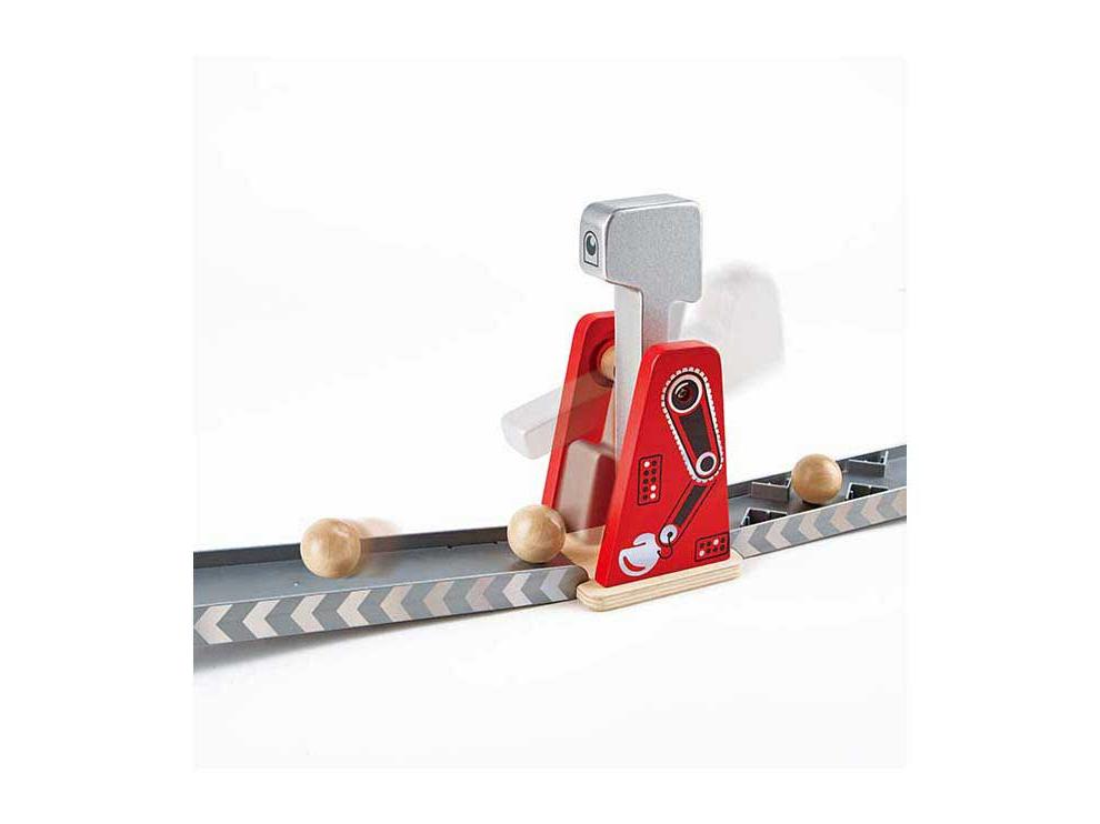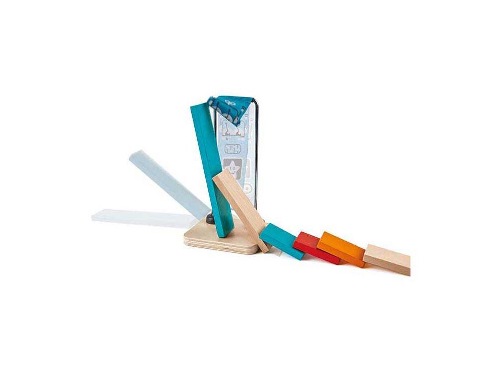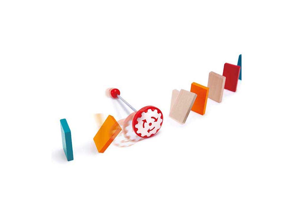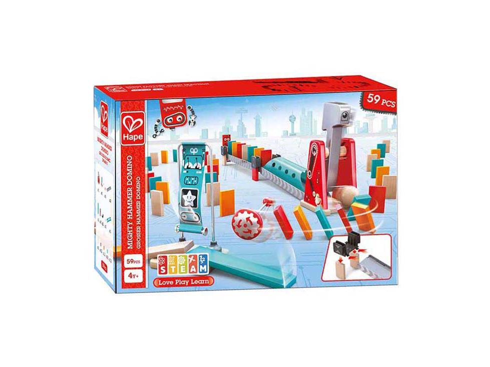 Ez a szórakoztató, robot témájú dominó készlet minden szintje mozgást és meglepetéseket tartogat. Indítsa el a dominókat, és figyelje, ahogy elengedik a golyót, és elszabadul a hatalmas robotkalapács. Játéktippek 1. Először építse meg az egyik, a dobozon látható konfigurációt. 2. Figyelje meg a dominóhatást, amikor a dominókövei eldőlnek, és egy fa golyó repül a átlátszó alagútba. A golyó aktiválja a kalapácsot, amely további dominókat dönt le, és elindítja a lendkeréket. Amikor az utolsó dominója is leesik, egy célzászló drámai befejezést biztosít. 3. Engedje szabadjára fantáziáját, és építsen új konfigurációkat. Jellemzők Robot témájú dominó készlet és kalapács Tartalmaz két összekötő darabot, két kétoldalas golyópályát, egy átlátszó alagutat, egy lendkeréket, egy robot kalapácsot, egy fa golyót, egy speciális dominót, öt magas dominót, két közepes méretű dominót, 42 standard dominót és egy célzászíjat. A dominók, a fa golyó és a speciális funkciók, mint a kalapács, a pálya és a lendkerék lendületet adnak a pályának. Bevezeti a gyerekeket a potenciális energia, a lendület és a gravitáció fogalmába Kiválóan alkalmas a logikai gondolkodás és a tudomány, a technológia, a mérnöki tudomány és a matematika alapjainak megértésének fejlesztésére 4 éves kortól