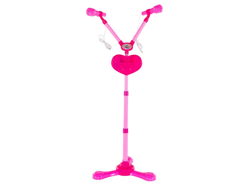 Rózsaszín mikrofonállvány két mikrofonnal, Bluetooth-szal, zenefunkcióval és fényeffektusokkal. Okostelefon-tartóval együtt. Műanyagból. 3 éves kortól alkalmas.