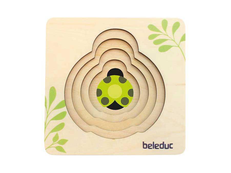 A Beleduc réteges puzzle a legkisebbeknek, de csecsemőknek is alkalmas. A katicabogár réteges puzzle-t rétegenként fedezhetik fel. A puzzle fából készült és négyzet alakú. A rétegek katicabogár formájúak. A színes, katicabogár formájú puzzle darabok nagyon vidámak, ezért különösen szórakoztatóak.