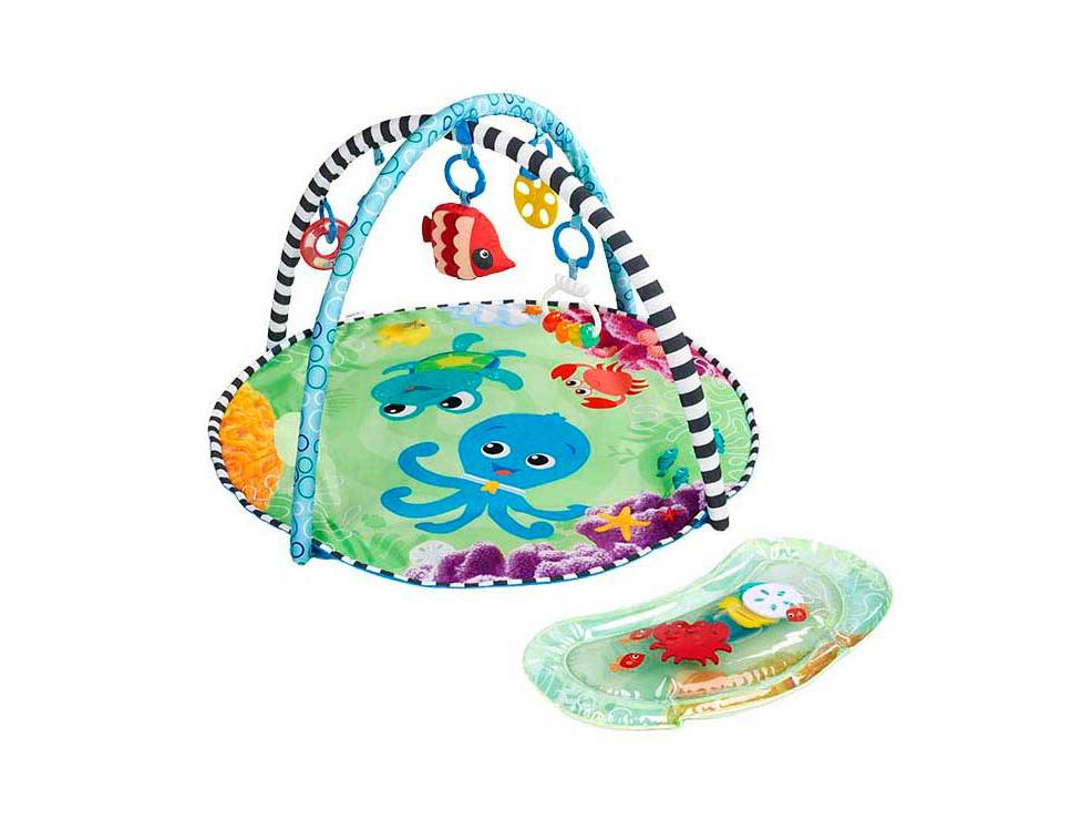 A Baby Einstein 2 az 1-ben babajátszószőnyeg vízmatraccal sokoldalú és izgalmas játékélményt nyújt babájának születésétől kezdve. Négy különböző játékmóddal tökéletes hasra fekvéshez, fekvéshez, üléshez és akár etetőszékben való használathoz is! Öt levehető játék biztosítja a változatosságot és stimulálja az érzékeket, a bababiztos tükörtől a csengő halig és a színes gyűrűkig. Jellemzők 4 játékmód: hasra fekvés, fekvés, ülés és etetőszék A tiszta víztapéta elősegíti a tapintási fejlődést 5 levehető játék, köztük tükör, csörgő és plüss hal A kontrasztos színek elősegítik a vizuális fejlődést Puha, kényelmes játékfelület a kicsik számára Ismert figurákat tartalmaz, mint például Opus, a polip Könnyen tisztítható és praktikus, utazáshoz összecsukható 0 hónapos kortól alkalmas