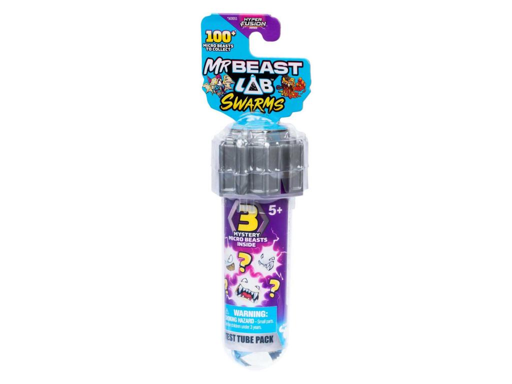 Hozz létre vadonatúj, állati MrBeast Lab Swarms-okat a Hyper Fusion sorozattal! Készülj fel az ULTIMÁTUM kísérletre, amelyben 3 kaotikus, MrBeast ihlette mikroszörnyeteg szabadul el. Nyisd ki a kémcsőcsomagot, és fedezd fel a három EPIKUS rajot. A Hyper Fusion sorozat több mint 100 egyedi, 1 hüvelykes MrBeast Swarms-ot kínál gyűjtőknek, köztük ritka, ultra ritka és különleges kiadásúakat. Először a sorozat tele van izgalmas extrákkal: fedezd fel a vadonatúj Hyper Fusion matricákat, hogy kiegészítsd gyűjteményedet. És ez még nem minden: az új Fusion Caps segítségével egymásra rakhatod, összekapcsolhatod a rajokat, és lenyűgöző, növekvő MrBeast Lab-ot hozhatsz létre, ahol a káosz soha nem ér véget. Öleld át a káoszt, keverj, építs, gyűjts, és indulj izgalmas kísérleti utazásra a MrBeast Lab Hyper Fusion Swarms-szal! Korhatár: 5 év felett