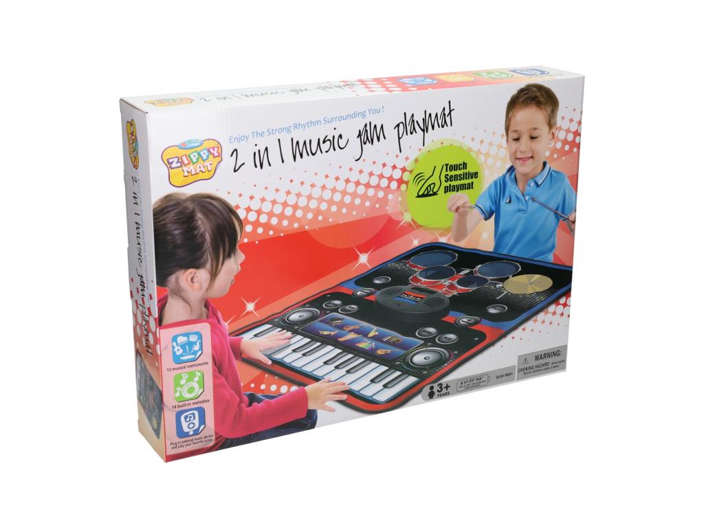Interaktív zenei szőnyeg 24 billentyűvel, 8 hangszeres hanggal és 4 dob móddal. 10 beépített dallammal, hangerő-szabályzóval és külső zene lejátszási lehetőséggel. Méretek: 90 x 69 cm, műanyagból. 3 éves kortól alkalmas.
