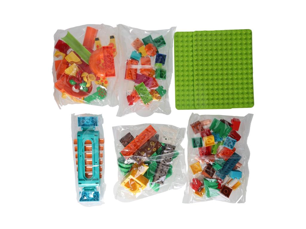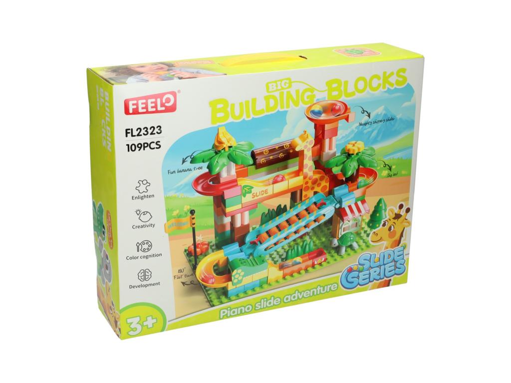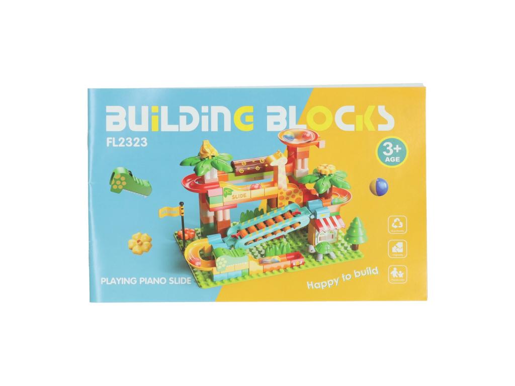 Zenei golyópálya dzsungel motívummal és 109 darabbal. Műanyagból, zongorabillentyűkkel és csúszkával. 3 éves kortól alkalmas, ideális kreatív játékhoz.