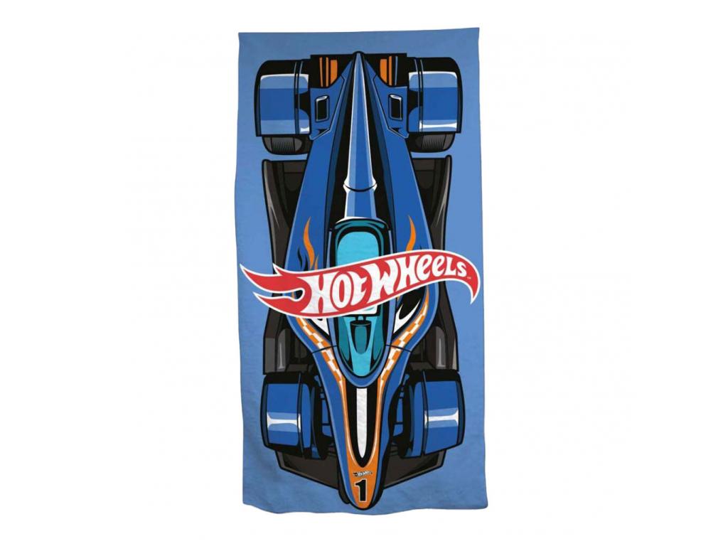 Hot Wheels strandtörölköző, mérete 70 x 140 cm, gyorsan száradó poliészterből. Élénk nyomtatott mintával, amelyen egy versenyautó látható akció közben. 3 éves kortól alkalmas.